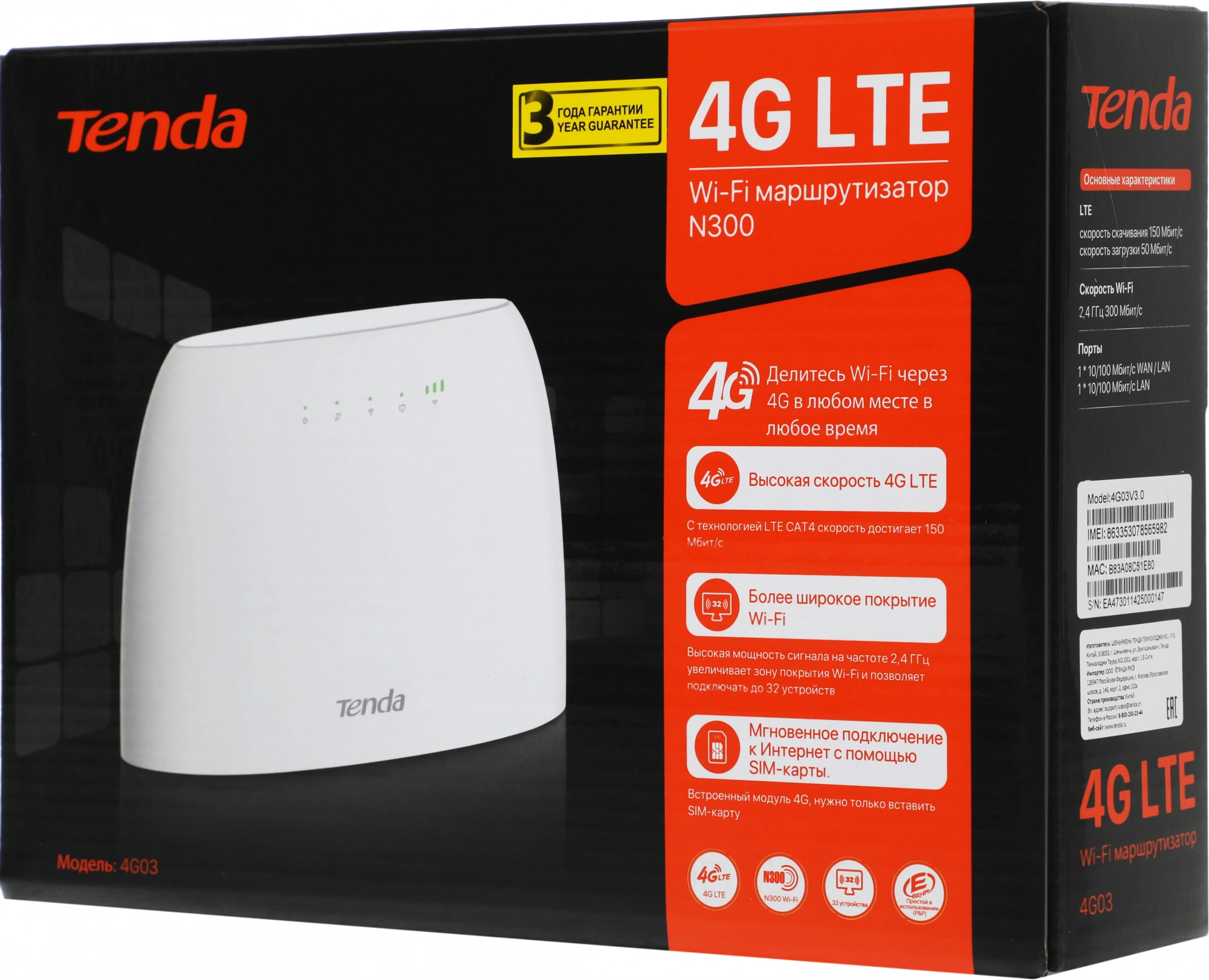 Роутер беспроводной Tenda 4G03 N300 10/100BASE-TX/4G cat. 4 белый