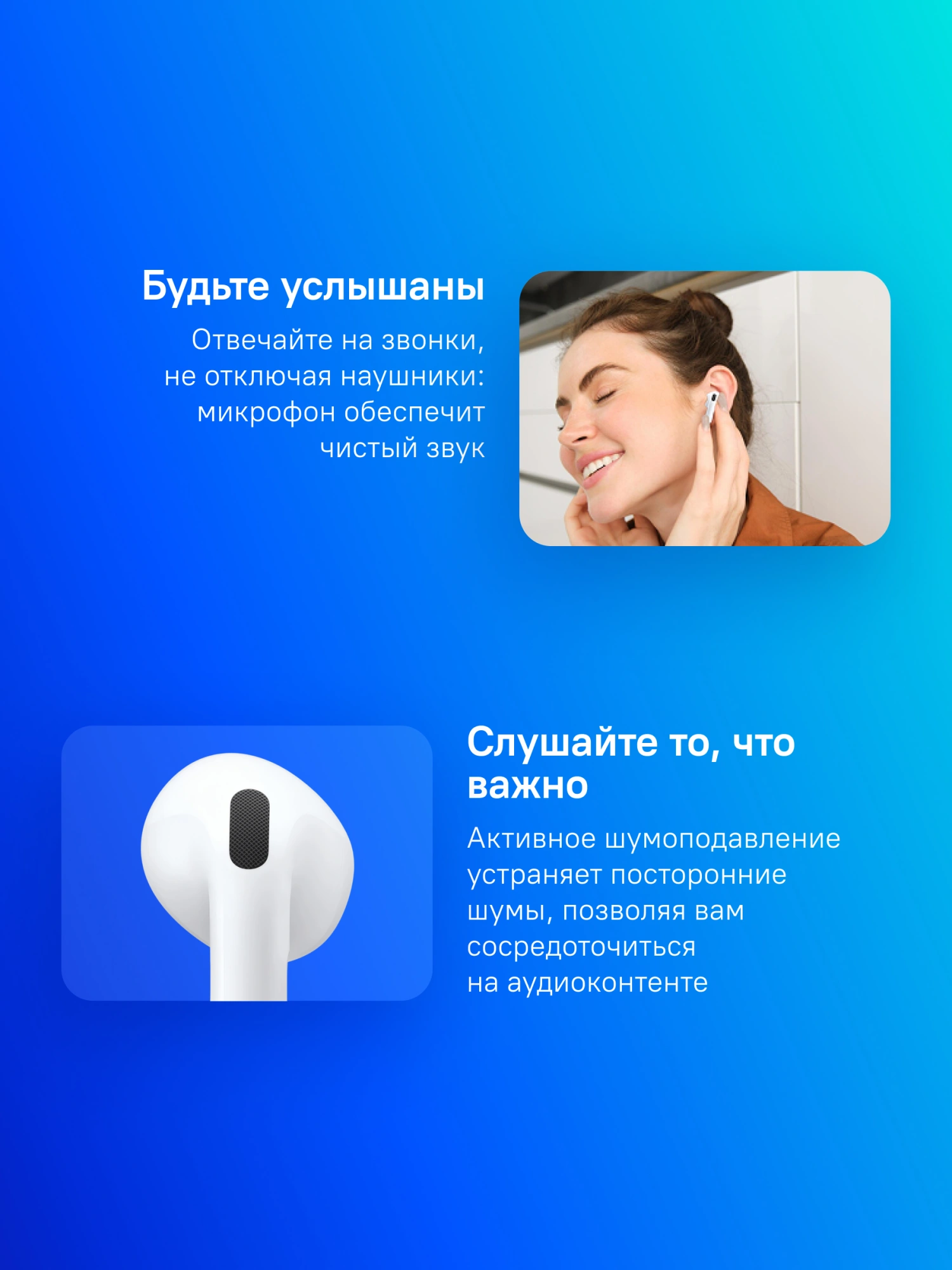 Гарнитура вкладыши Apple AirPods 4 ANC A3055,A3056,A3059 белый беспроводные bluetooth в ушной раковине (MXP93ZA/A)