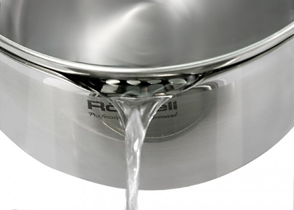 - ОсобенностиНерж. сталь 18/10. Тройное дно без воздушных полостей. Оригинальный дизайн крышки для удобного слива жидкости без дуршлага. Ручки из бакелита с покрытием soft touch. Внутренние отметки литража. Для всех видов плит, включая индукционные. Гарантия на сталь – 25 лет