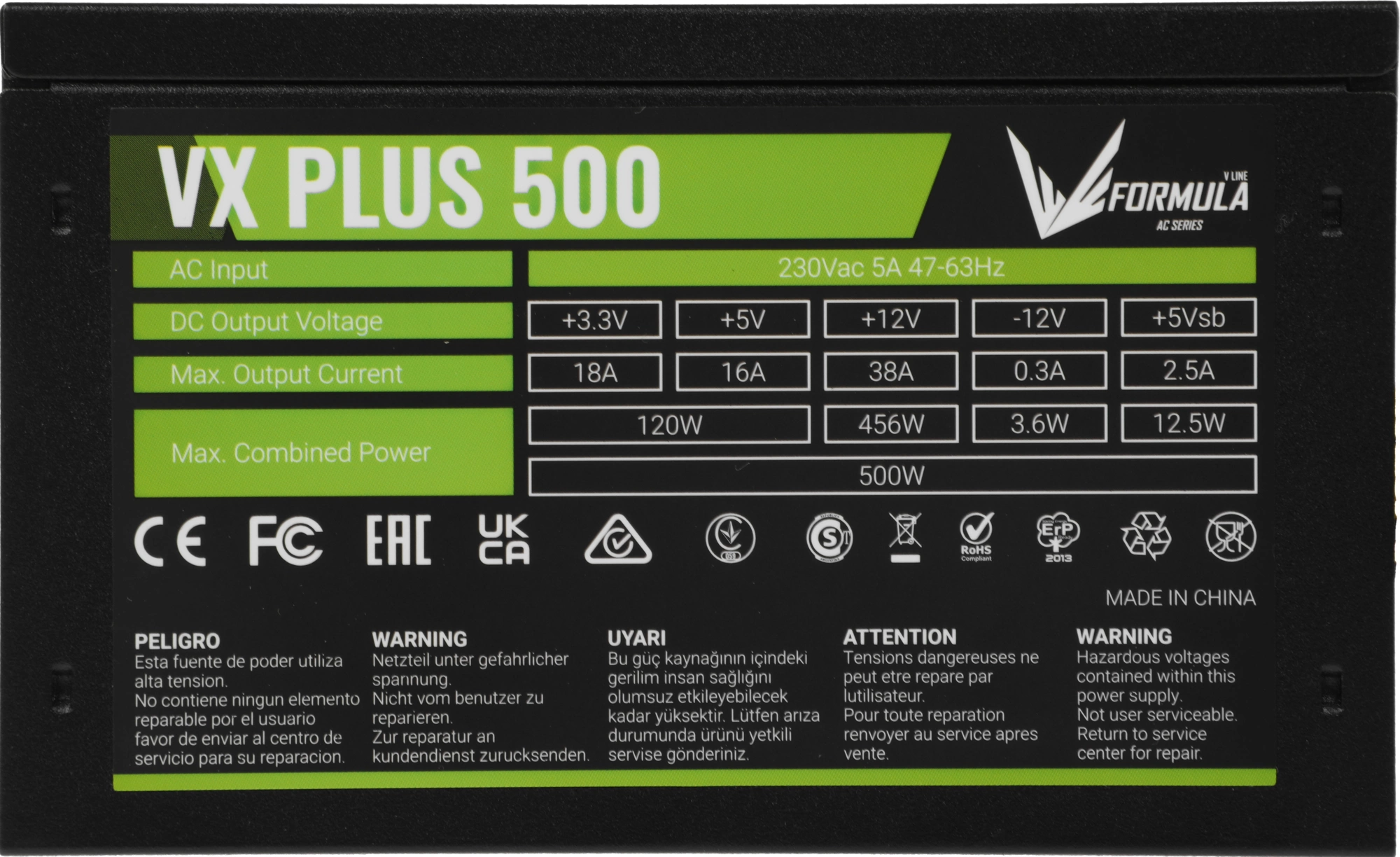 Блок питания Formula ATX 500W AC VX PLUS (20+4pin) 120mm fan 3xSATA RTL