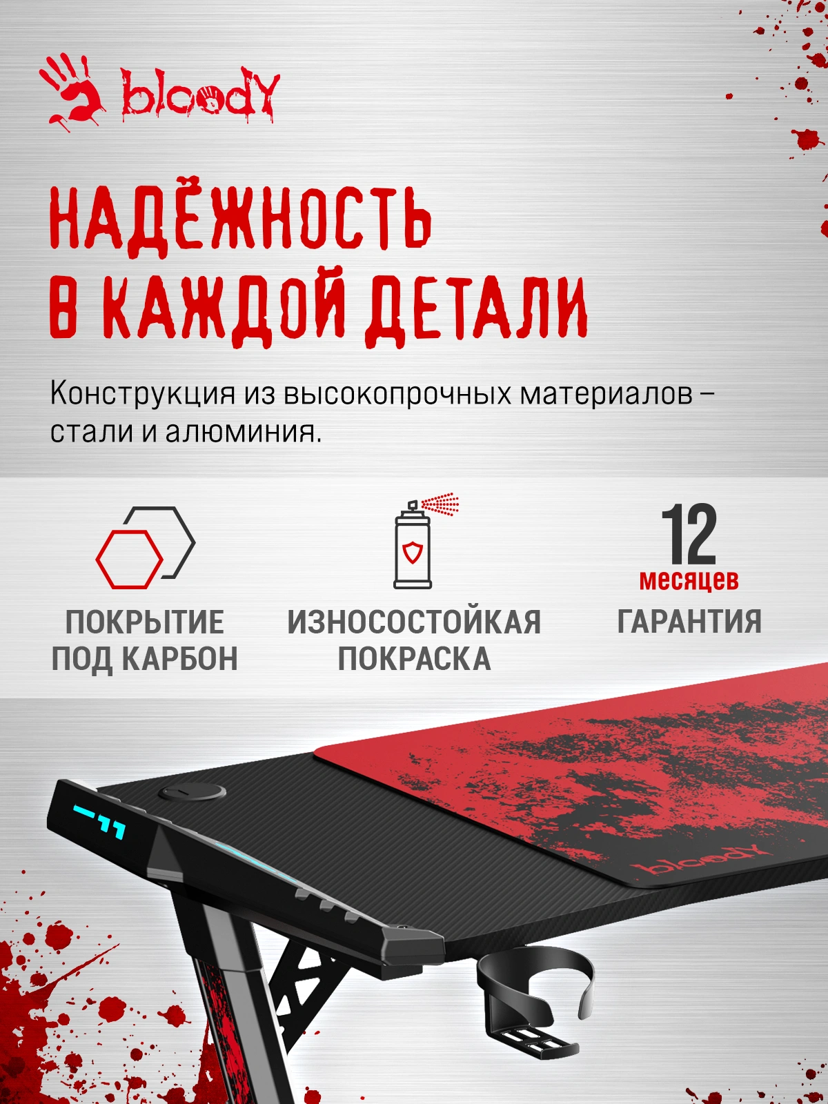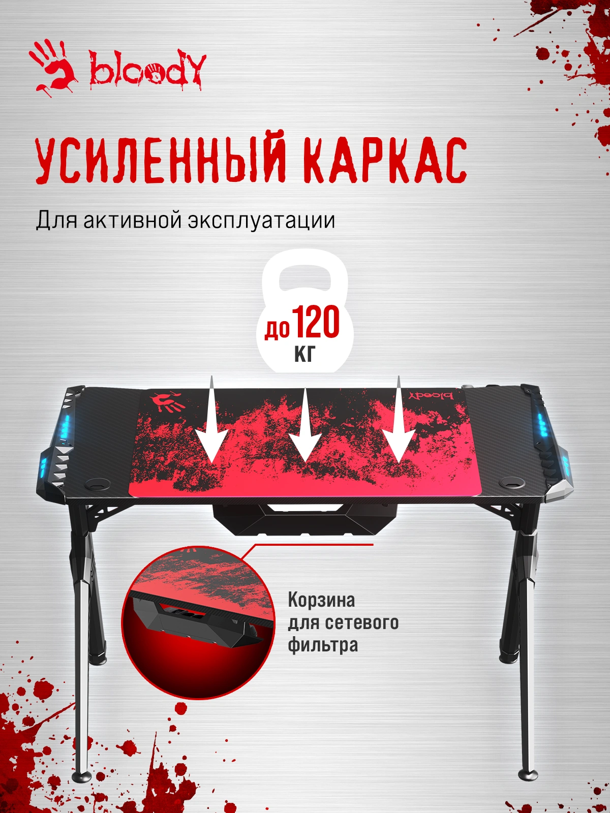 Стол игровой Bloody BD-TB101 столешница ЛДСП карбон каркас черный 140x75x75см