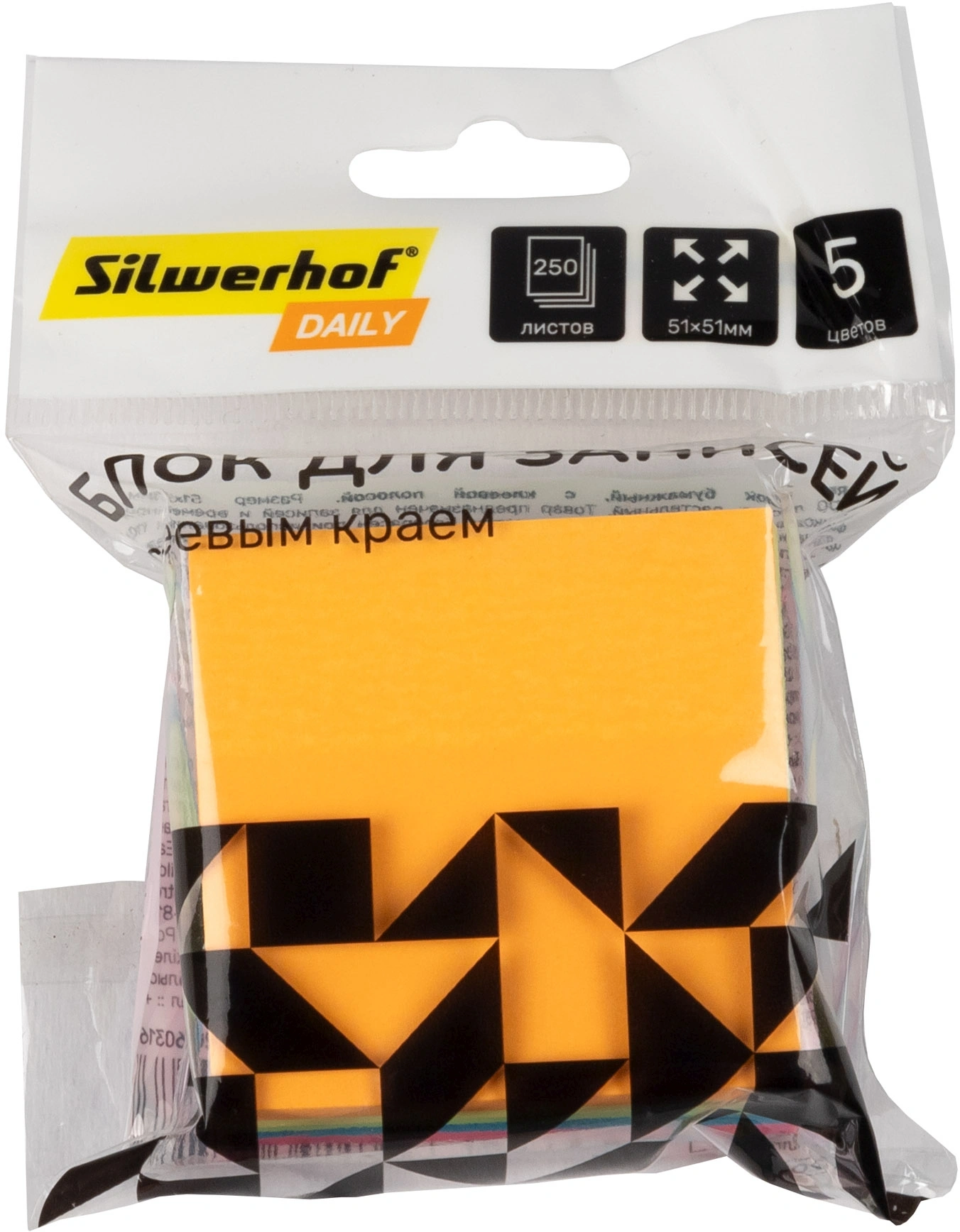Блок самоклеящийся бумажный Silwerhof Daily 51x51мм 250лист. 75г/м2 неон 5цв.в упак. европодвес