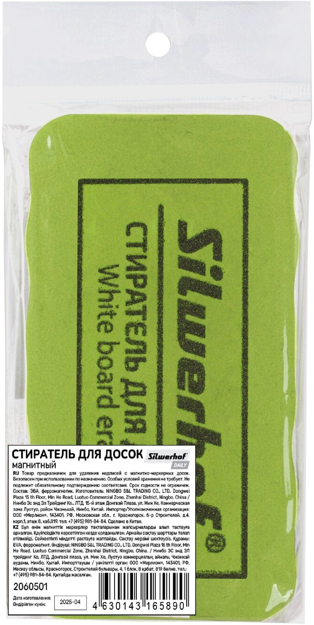Стиратель Silwerhof Daily для досок фетр 10.7x5.7x2см зеленый магнитный