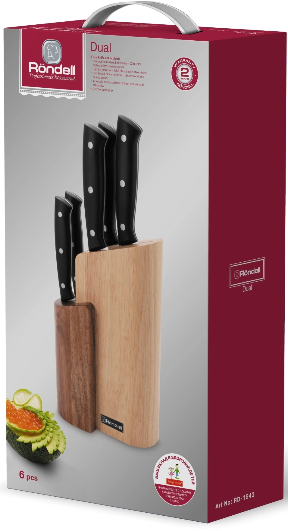 Набор ножей кухон. Rondell Dual RD-1943 компл.:6предм. с подставкой черный подар.коробка