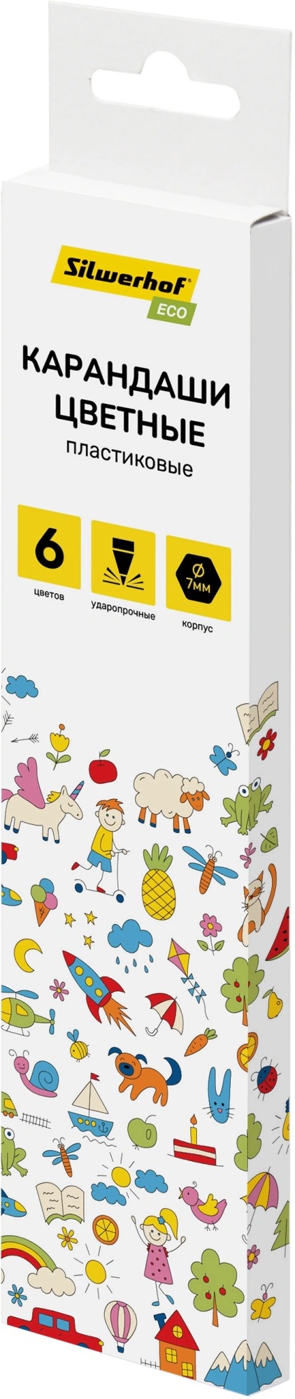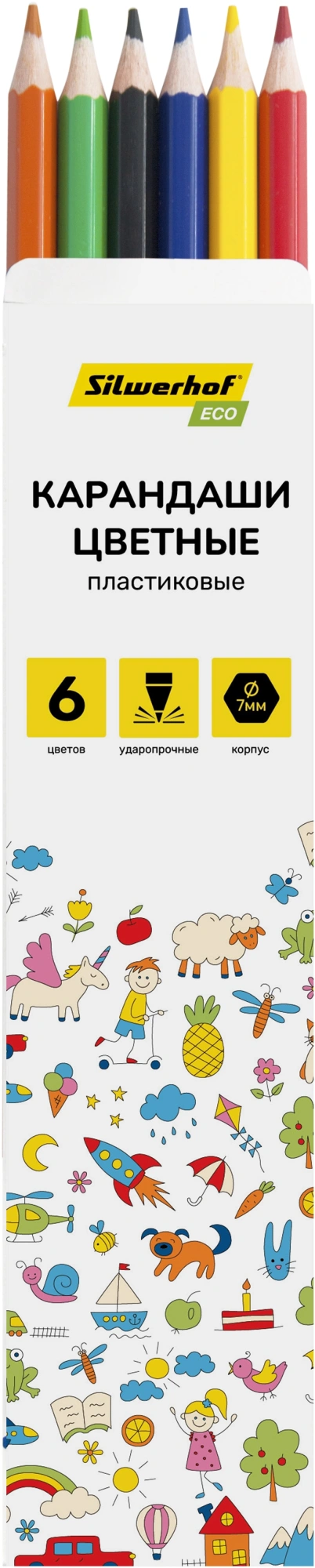 Карандаши цв. Silwerhof Eco 2.6мм шестигран. пластик ассорти 6цв. коробка/европод.