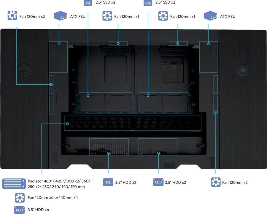 Корпус Lian-Li DK07X черный без БП E-ATX 12x120mm 4x140mm 2xUSB3.0 audio bott PSU