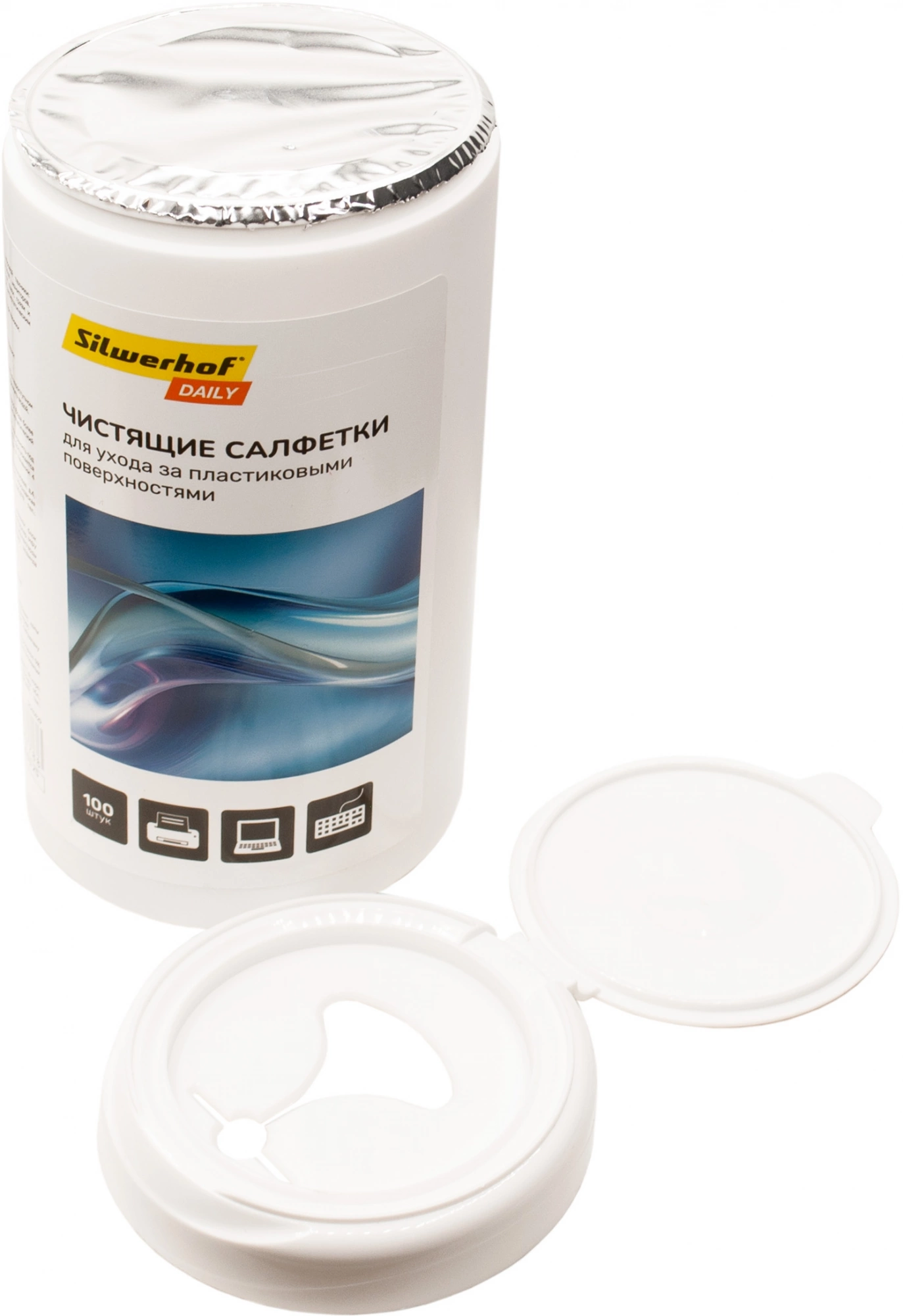 Салфетки Silwerhof Daily для компьютеров и оргтехники туба 100шт влажных