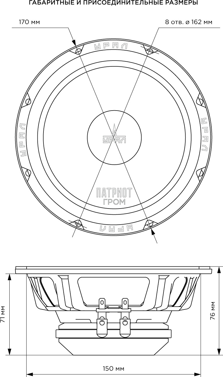 Колонки автомобильные Ural АС-ПТ165.2 ГРОМ (без решетки) 600Вт 99.7дБ 4Ом 16.5см (6 1/2дюйм) (ком.:1кол.) широкополосные однополосные
