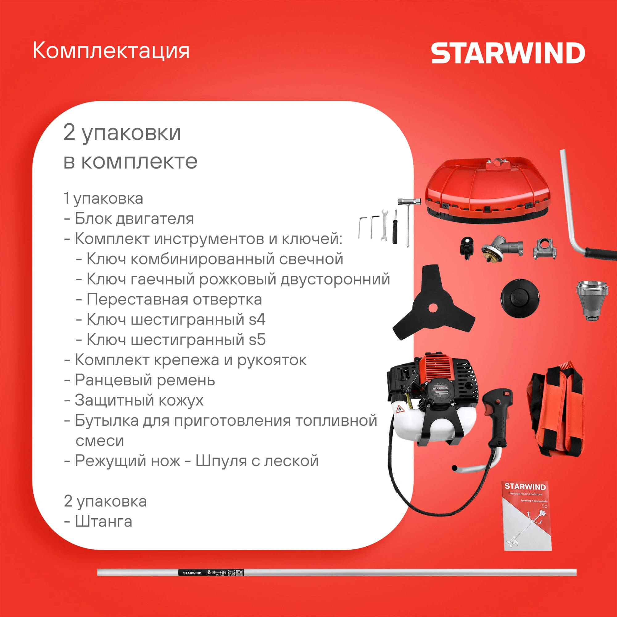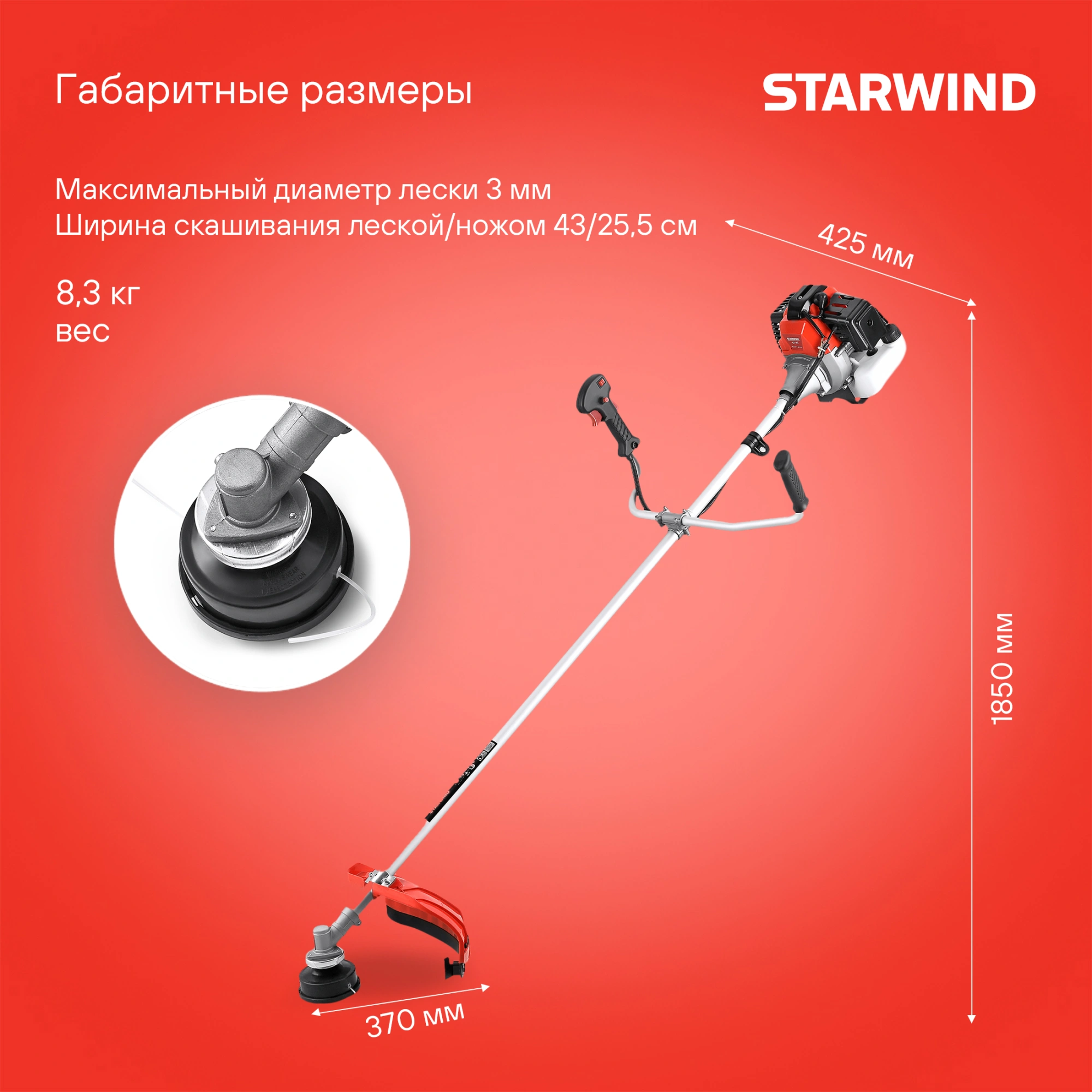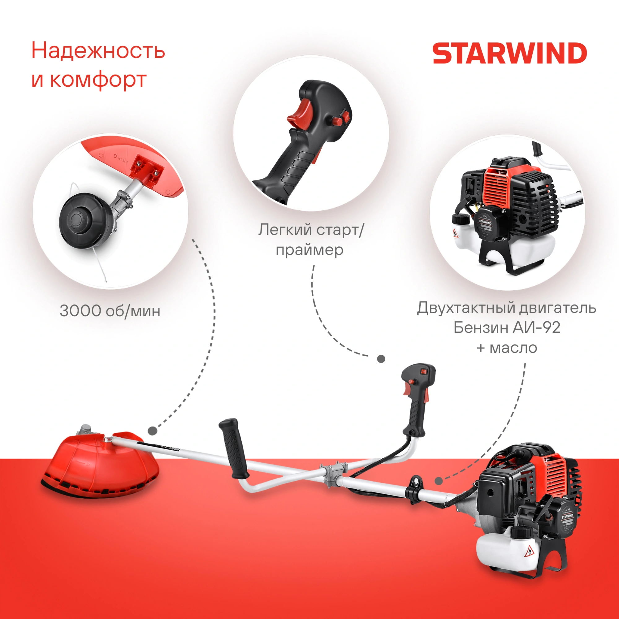 Триммер бензиновый Starwind GT-33 800Вт 1.1л.с. реж.эл.:леска/нож