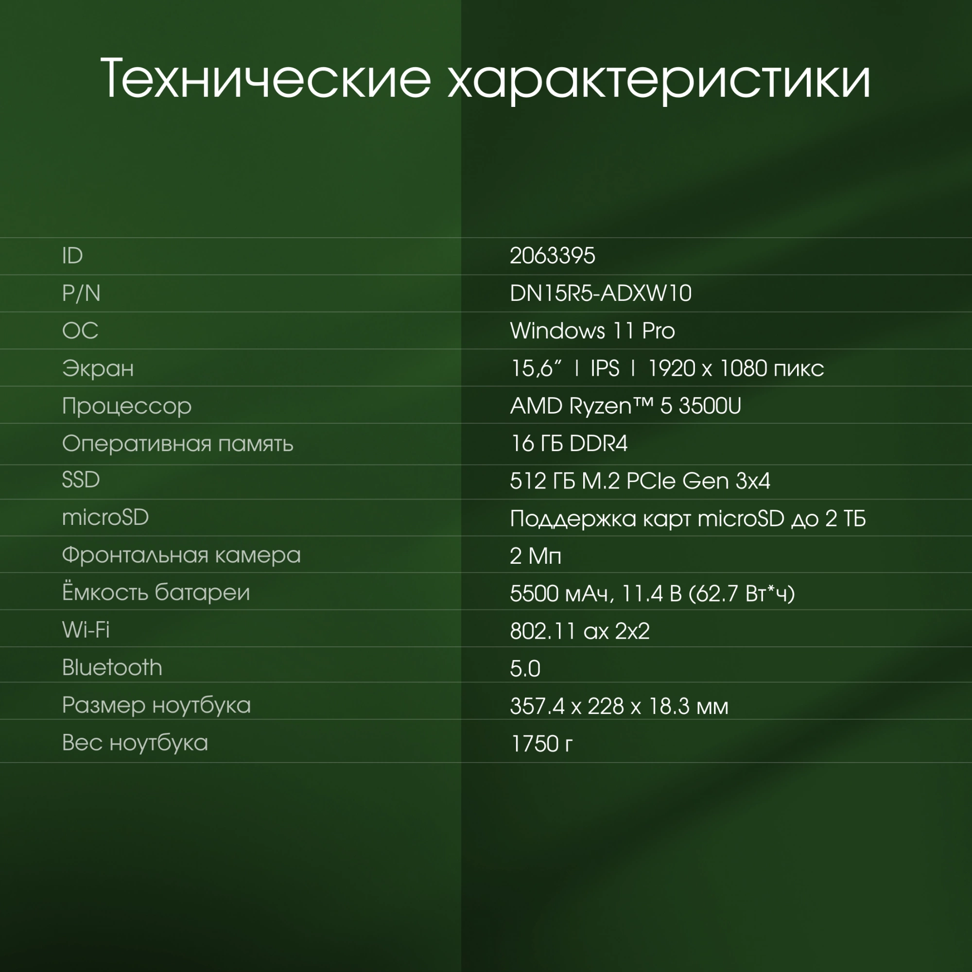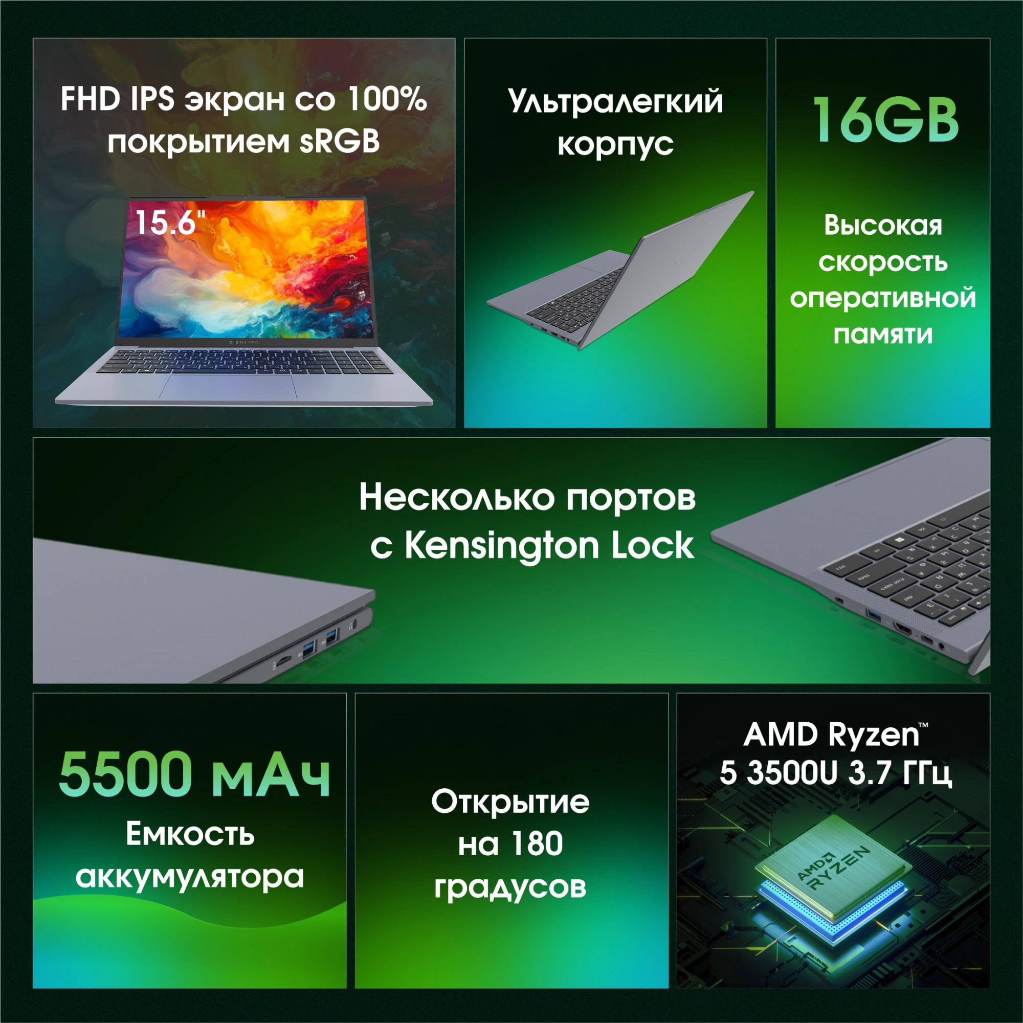 Ноутбук Digma Pro Cursus Ryzen 5 3500U 16Gb SSD512Gb AMD Radeon Graphics 15.6" IPS FHD (1920x1080) Windows 11 Pro grey WiFi BT Cam 5500mAh (DN15R5-ADXW10)