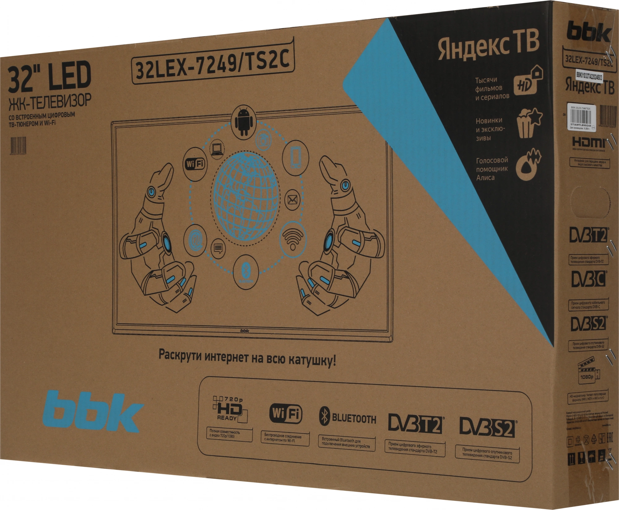 Телевизор LED BBK 32" 32LEX-7249/TS2C (B) Яндекс.ТВ черный HD 60Hz DVB-T2 DVB-C DVB-S2 USB WiFi Smart TV (RUS)