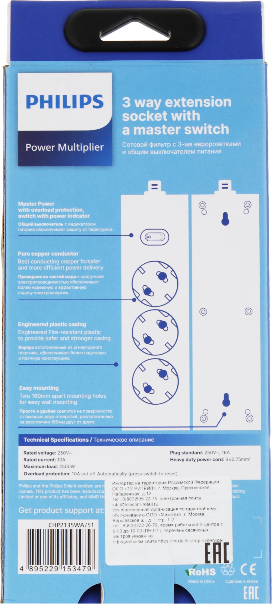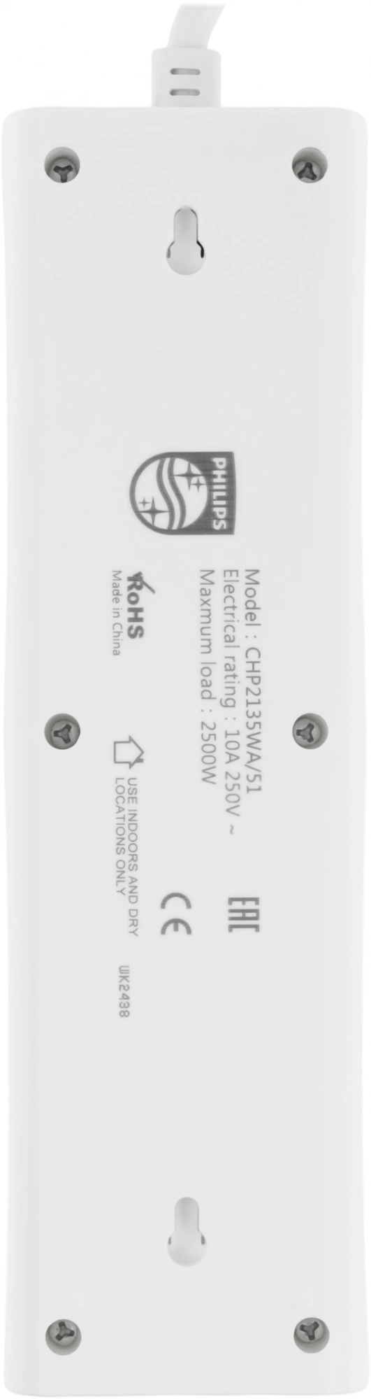 Сетевой фильтр Philips CHP2135WA/51 2м (3 розетки) белый (коробка)
