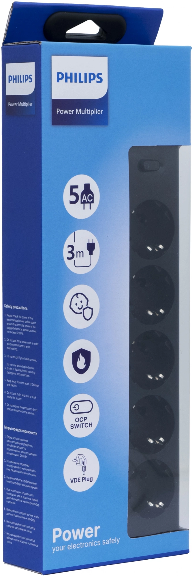 Сетевой фильтр Philips CHP2155BB/51 3м (5 розеток) черный (коробка)