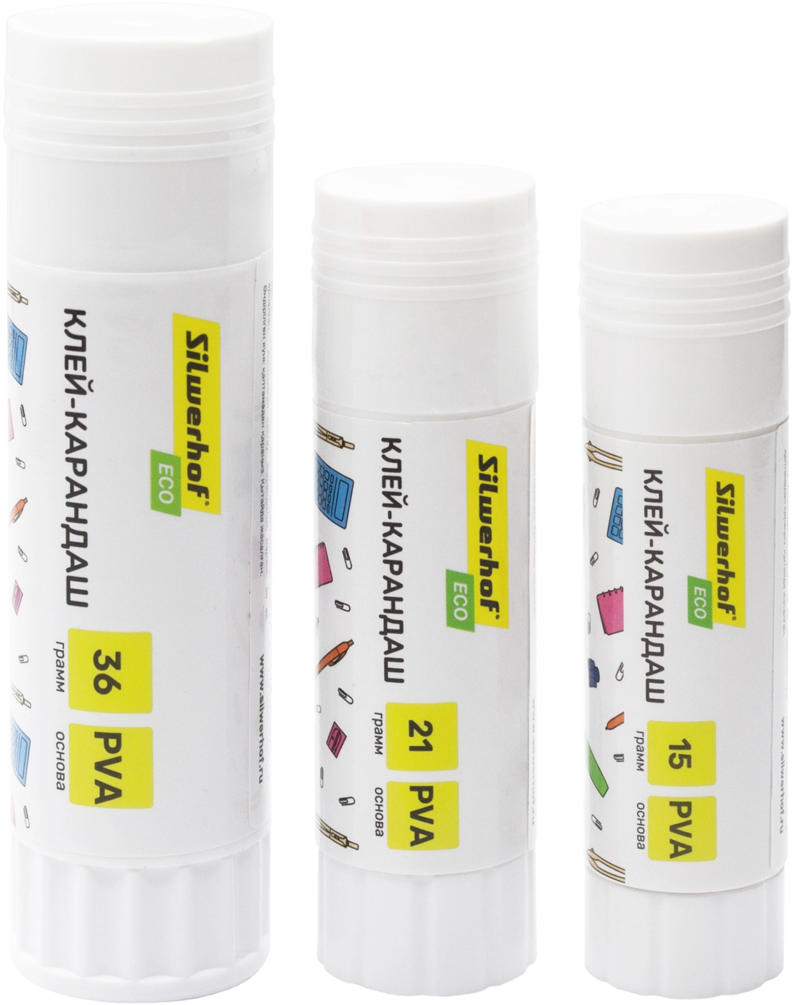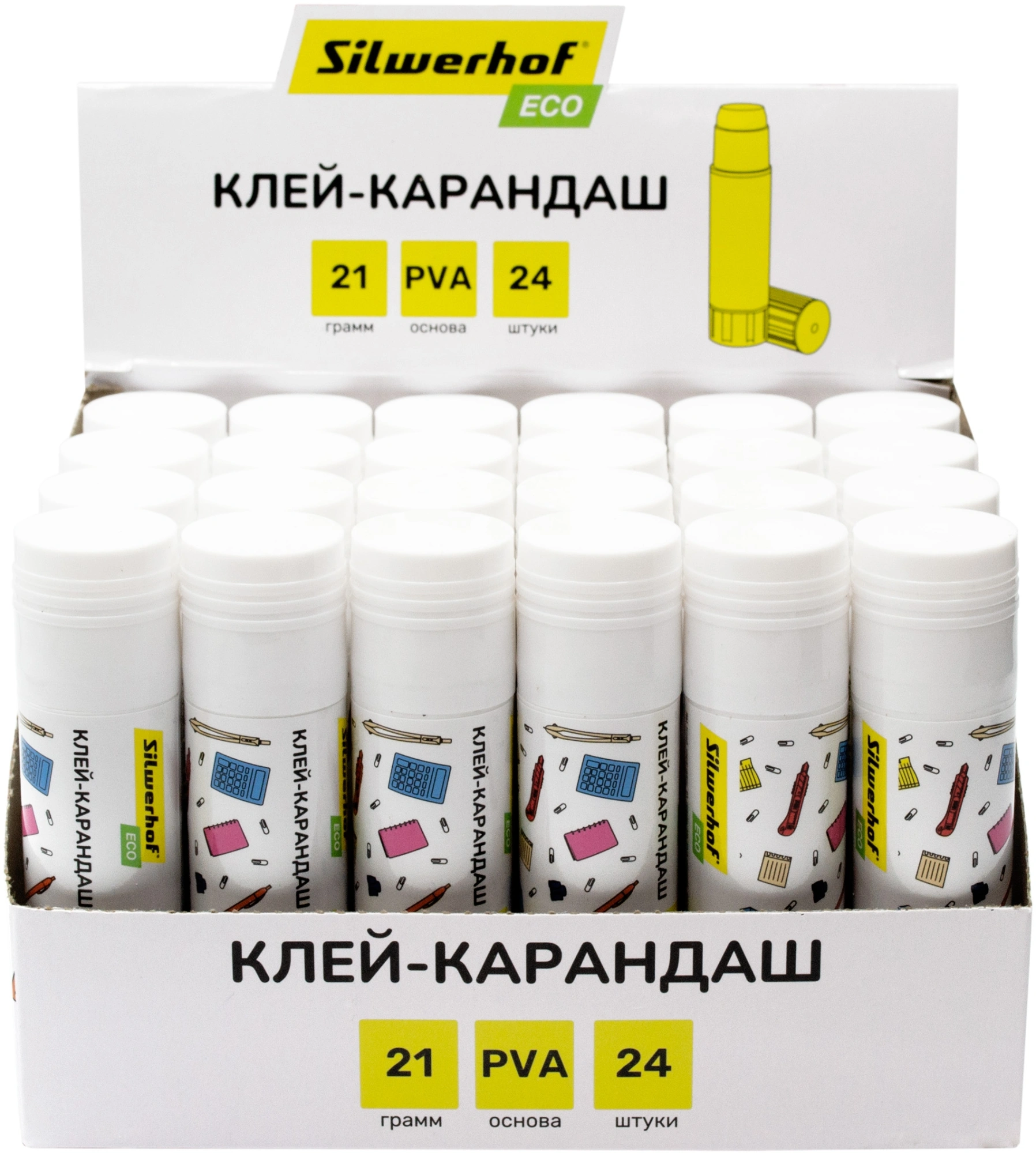 Клей-карандаш Silwerhof Eco 21гр ПВА дисплей картонный