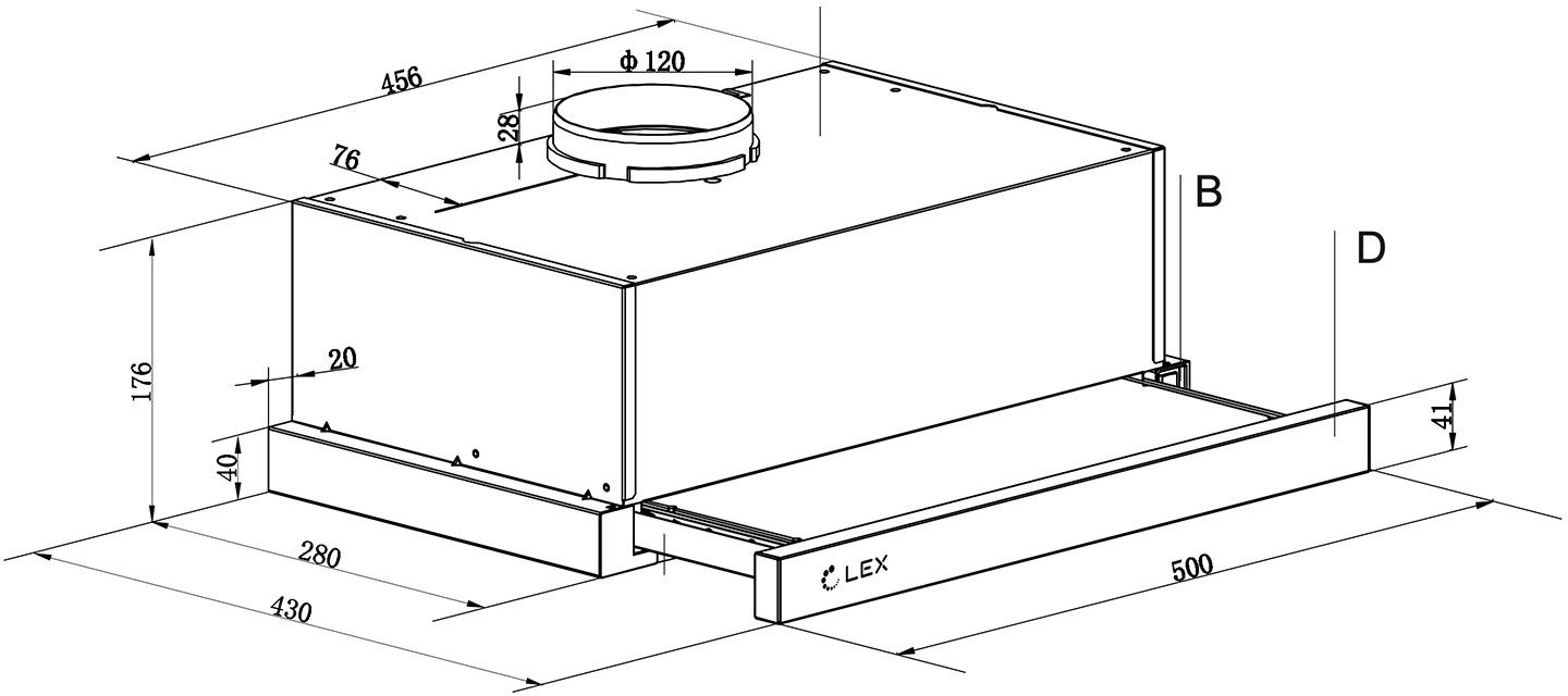 Вытяжка встраиваемая Lex Hide 500 нержавеющая сталь управление: кнопочное (1 мотор)