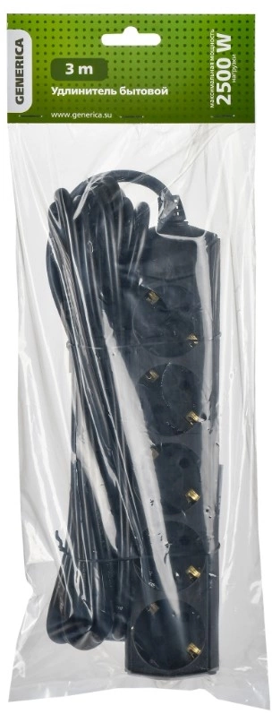 Сетевой удлинитель IEK У05 3м (5 розеток) черный (пакет ПЭ)