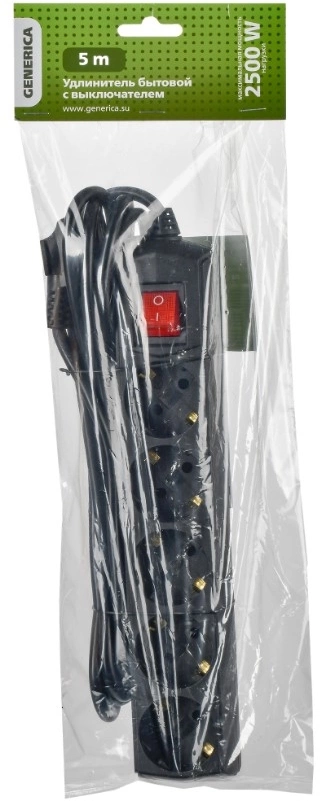 Сетевой удлинитель IEK У05В 5м (5 розеток) черный (пакет ПЭ)