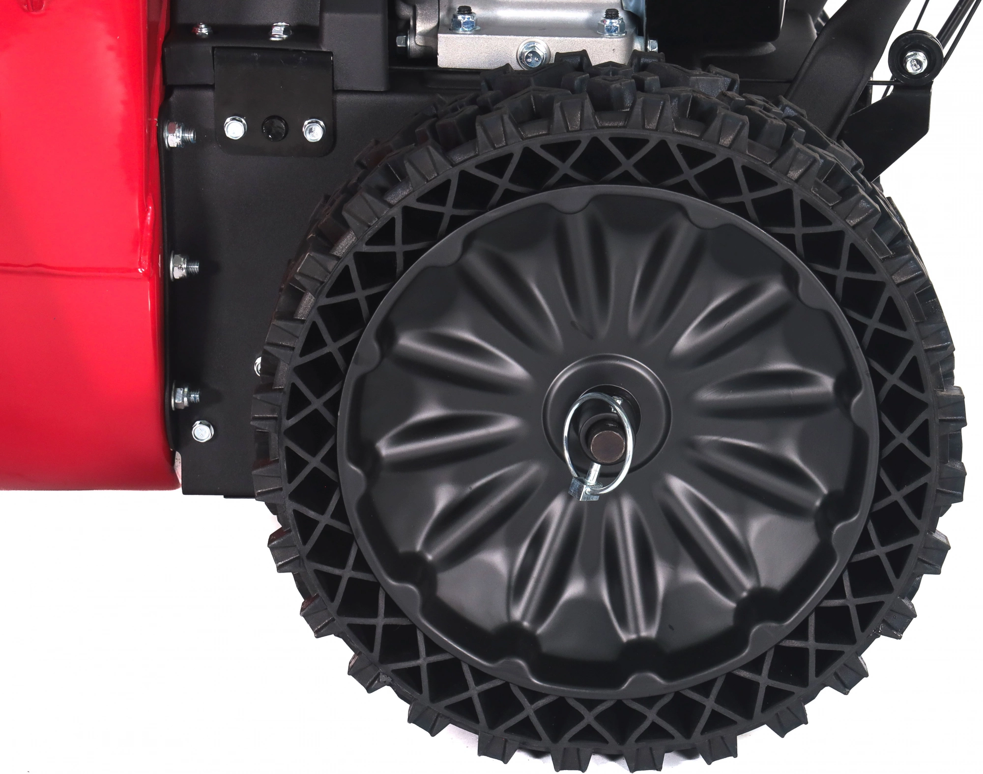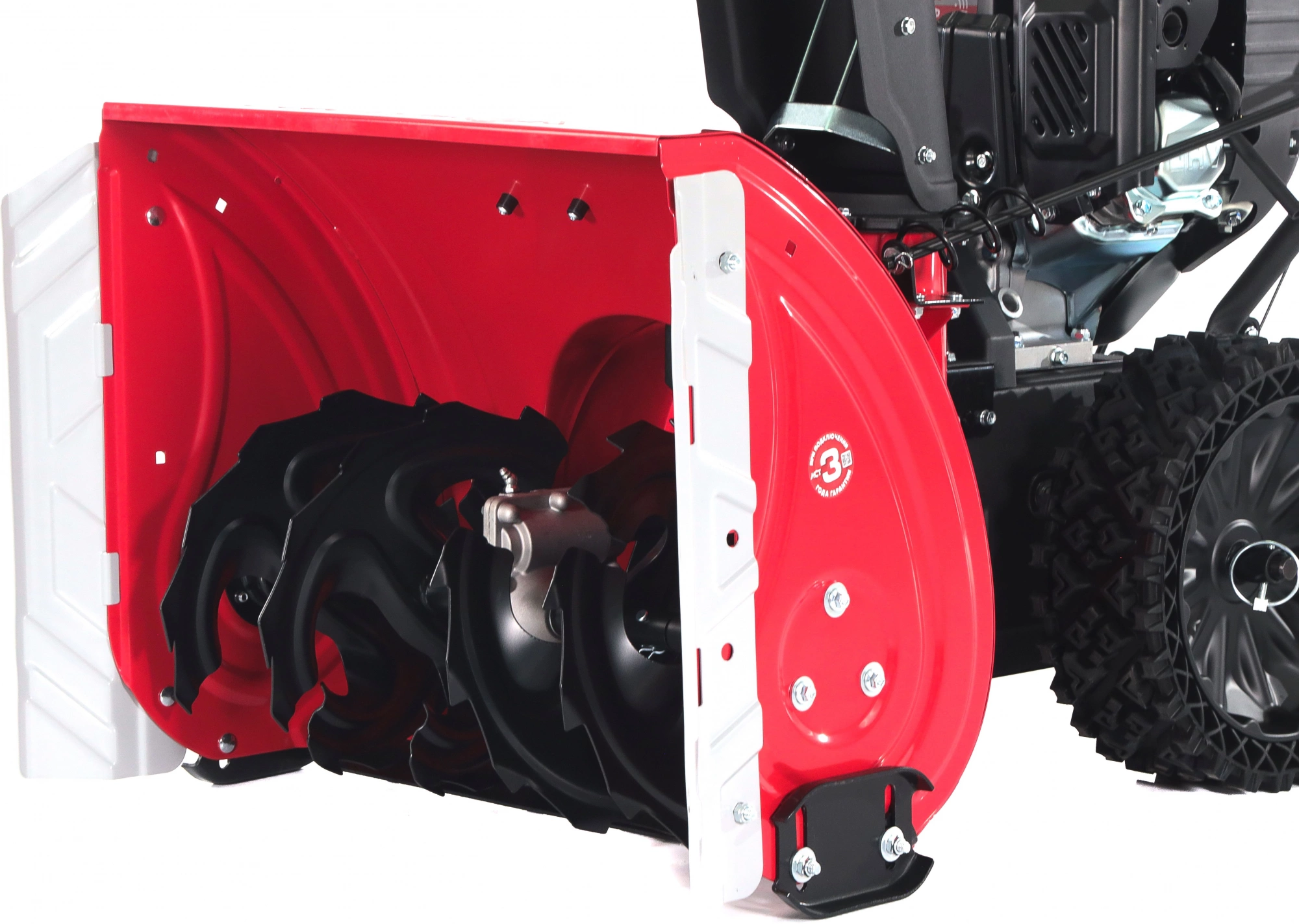 - ОсобенностиДвухступенчатая система выброса со стальным шнеком позволит справиться даже с уборкой плотного слежавшегося снега и измельчением ледяного наста. Двигатель высокой мощности и колесный привод (самоходная конструкция) обеспечивают максимальное удобство использования агрегата, высокую производительность