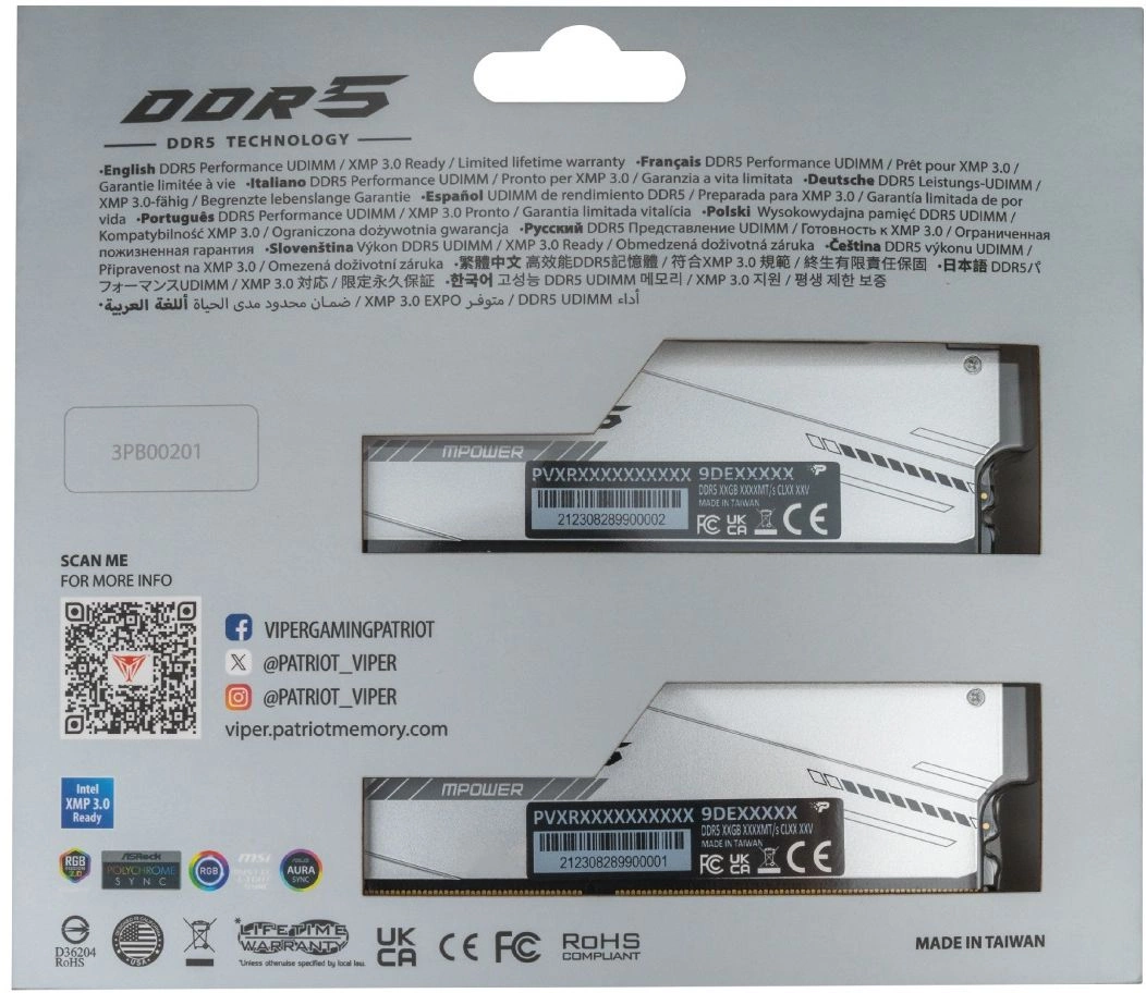 Память DDR5 2x16GB 6000MHz Patriot PVXR532G60C30KM Viper Xtreme 5 RGB RTL Gaming PC5-48000 CL30 DIMM 288-pin 1.35В с радиатором Ret