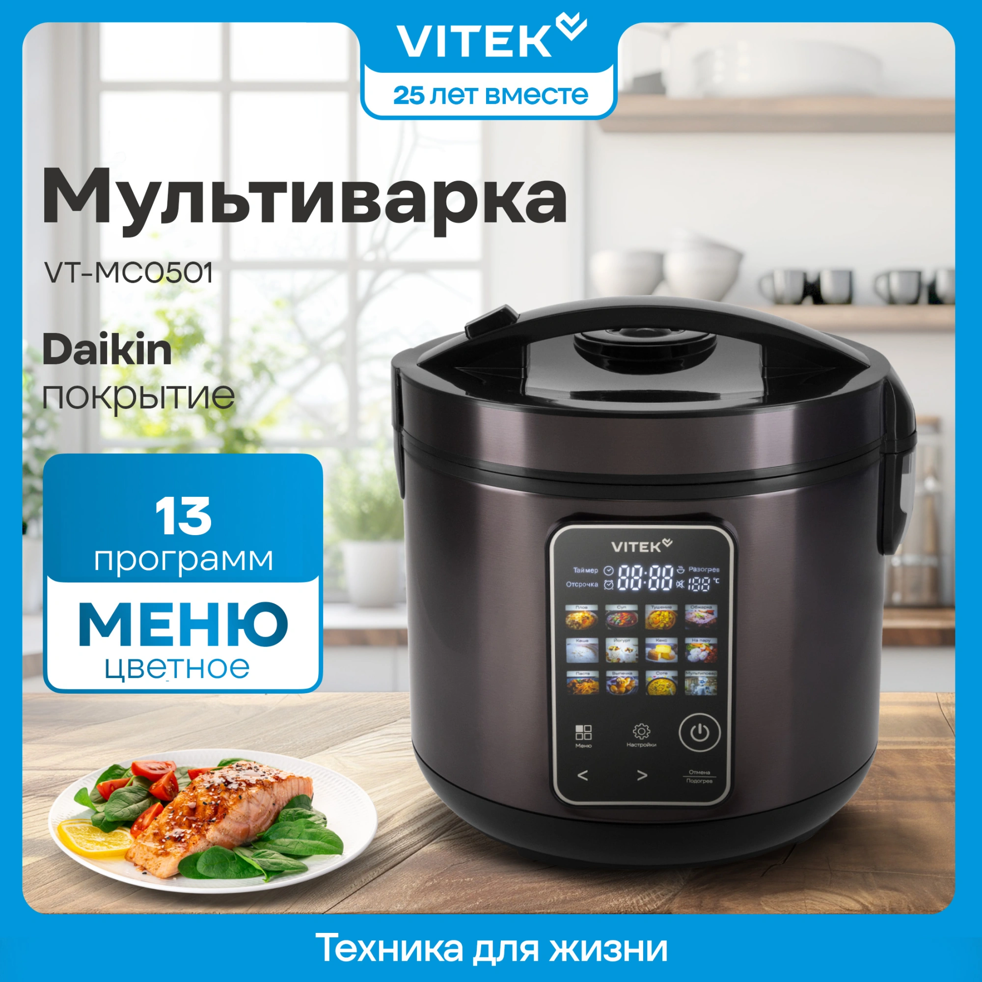 Мультиварка с сенсорным управлением, цветными иконками блюд и чашей антипригарным покрытием Daikin