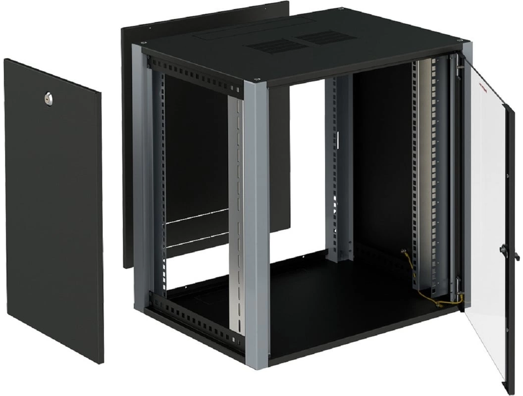Шкаф коммутационный Sysmatrix (WP 6312.910) настенный 12U 600x350мм пер.дв.стекл 2 бок.пан. 60кг черный 20кг IP20