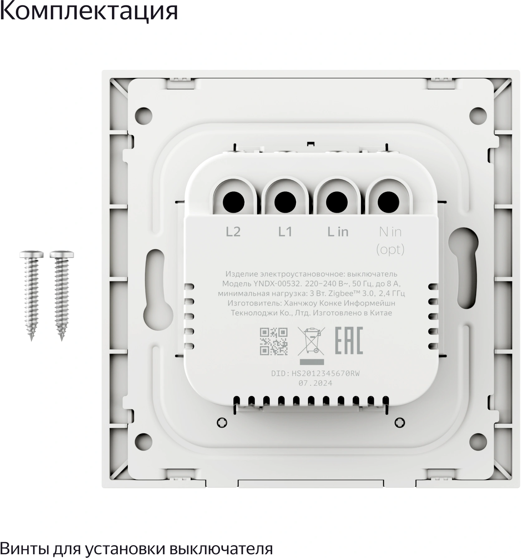 - Комплект поставкивыключатель, комплект винтов, инструкция