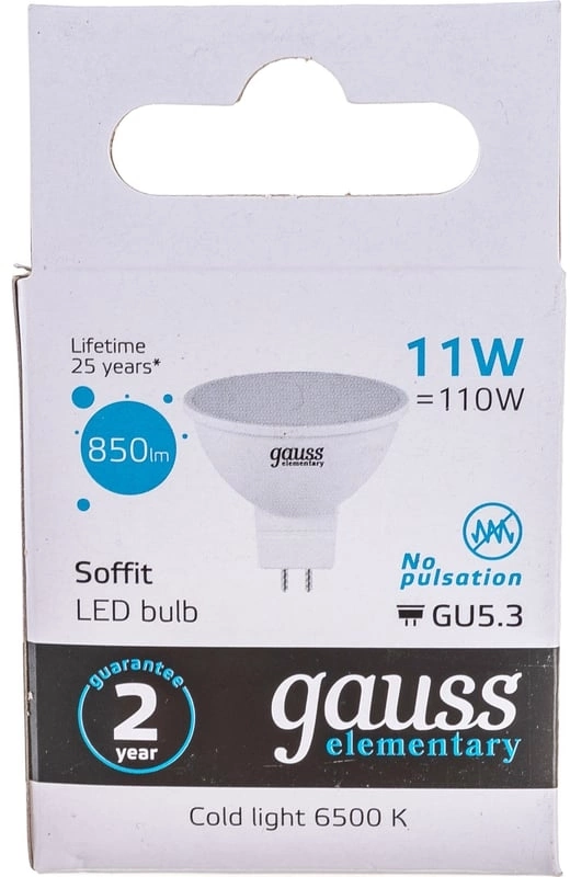 Лампа светодиодная Gauss Elementary 13531 11Вт цок.:GU5.3 софит 180B св.свеч.бел.хол. MR16 (упак.:10шт)