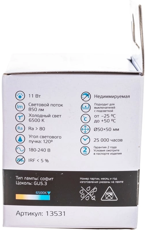 - Цветовая температура6500