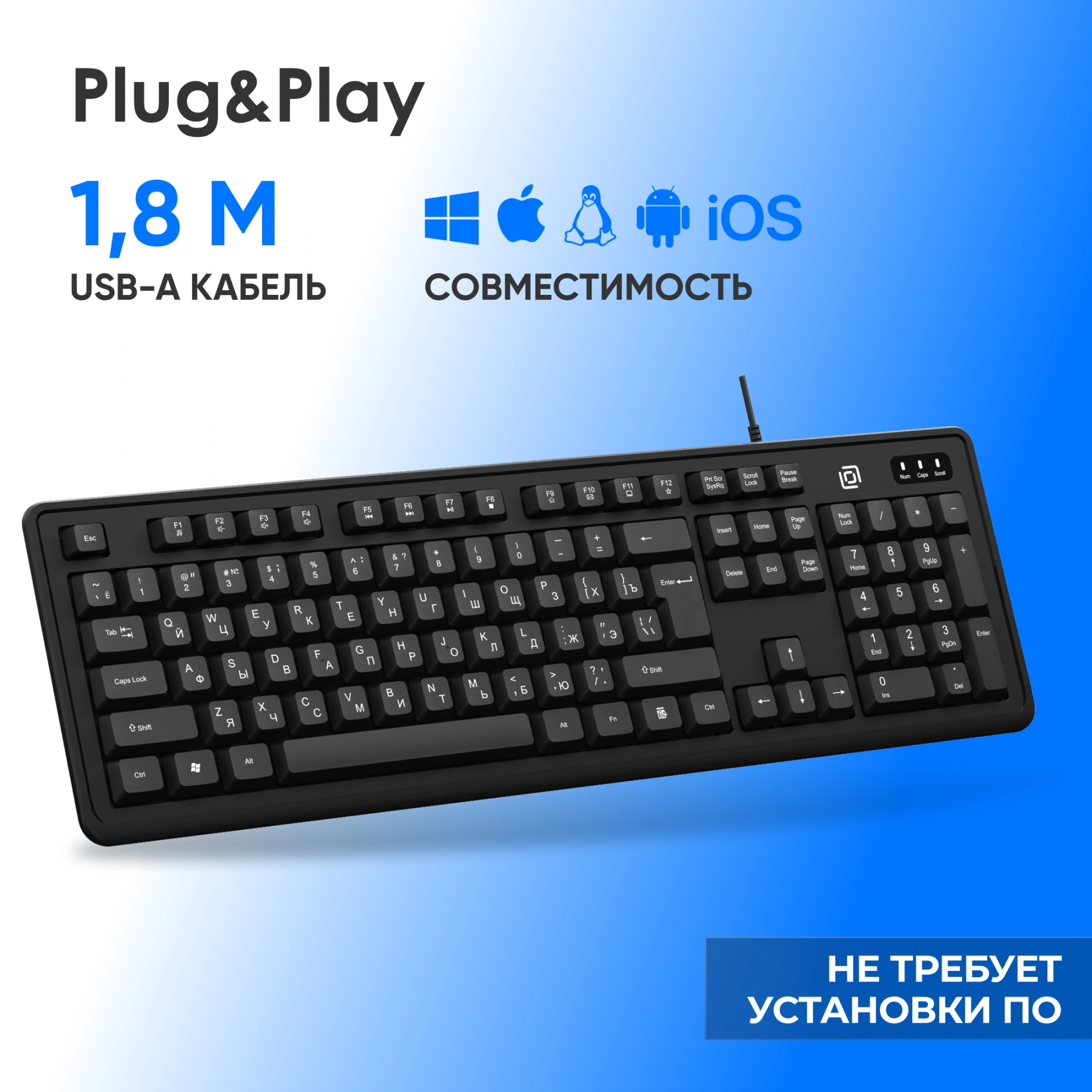 - ОсобенностиКабель 1,8 м., мультифункциональные клавиши F1 - F12, ножки регулировки высоты