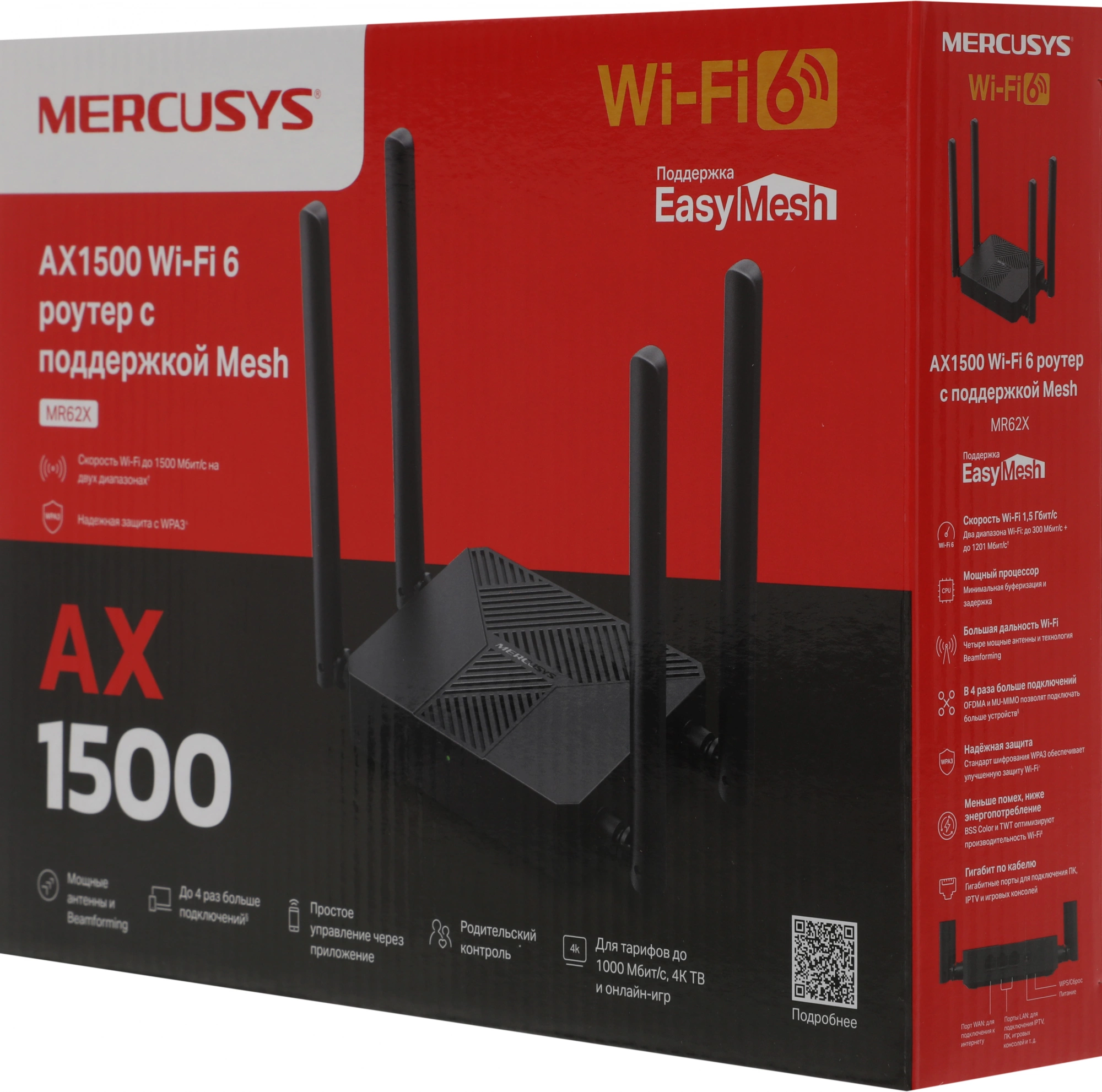 Роутер беспроводной Mercusys MR62X AX1500 10/100/1000BASE-TX черный