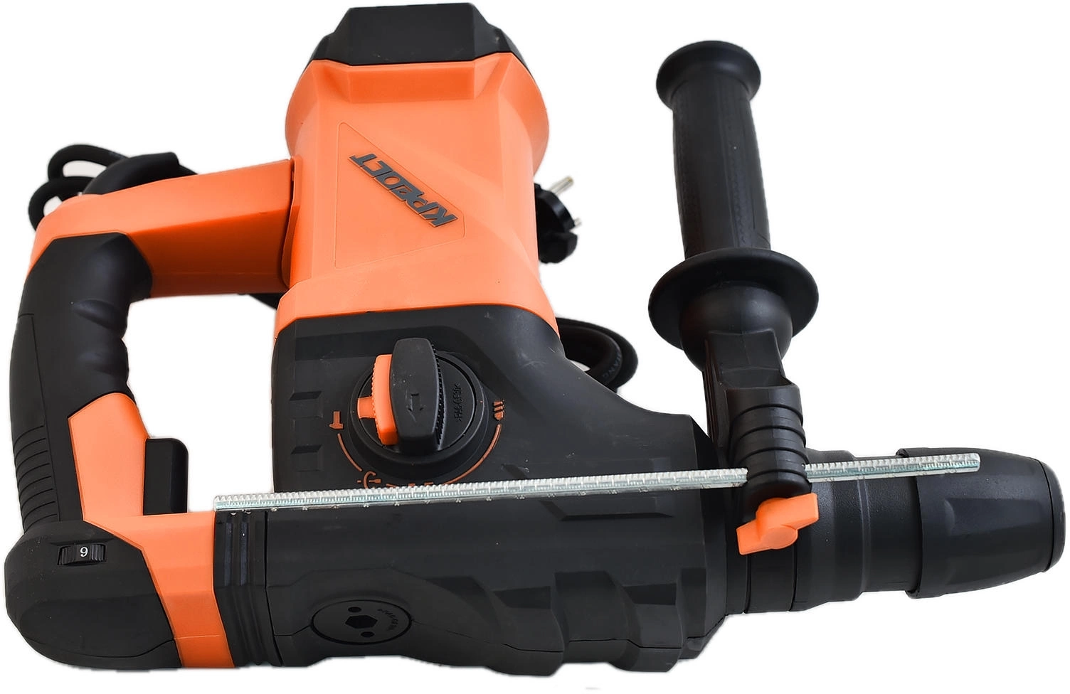 - ОсобенностиЭлектрический перфоратор Креост KE-821500-32 питается от сети. Имеет ограничитель глубины сверления и D-образную рукоятку. Устройство предназначено для работ по дереву, бетону и металлу. Модель поддерживает три режима работы: долбление, сверление и сверление с ударом.