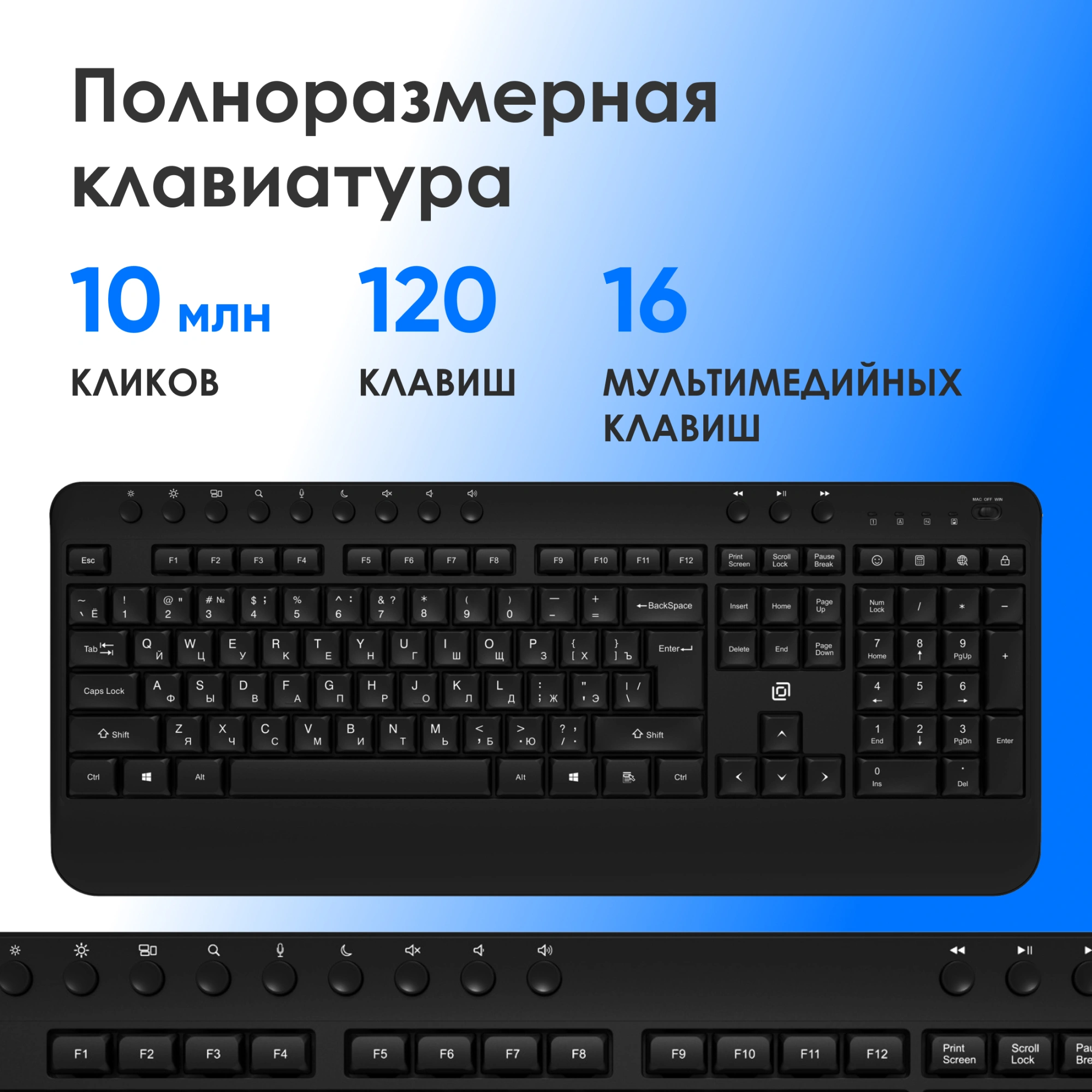 - Размеры клавиатуры445x28x187мм