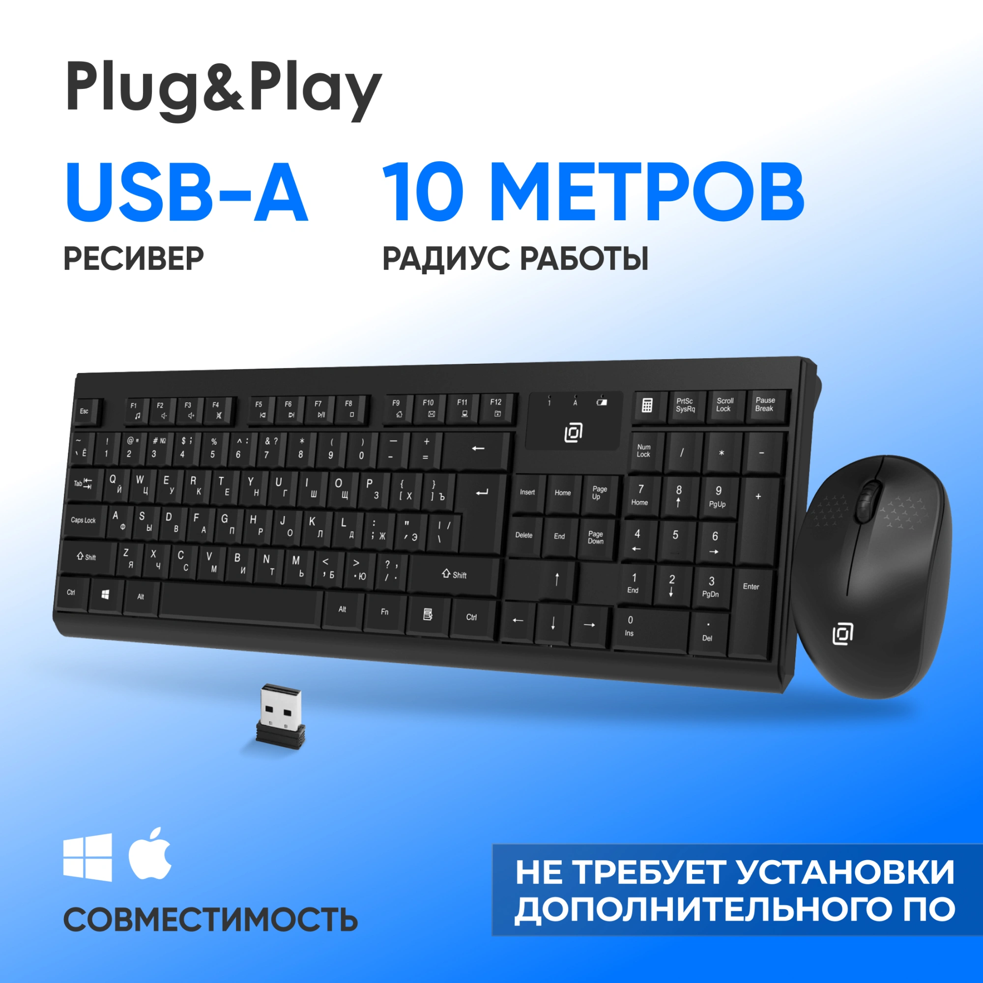 Клавиатура + мышь Оклик S269W клав:черный мышь:черный USB беспроводная slim Multimedia (2070303)