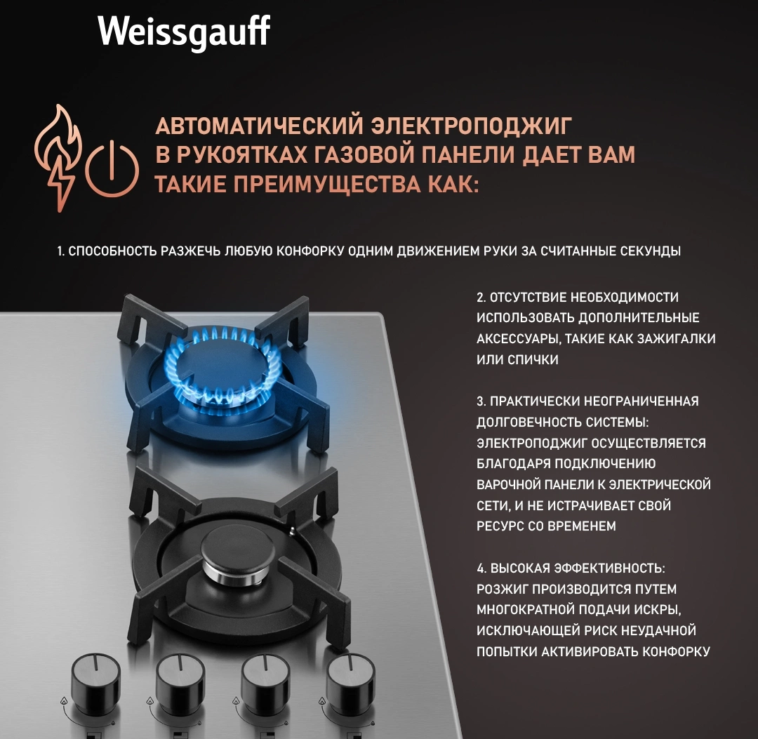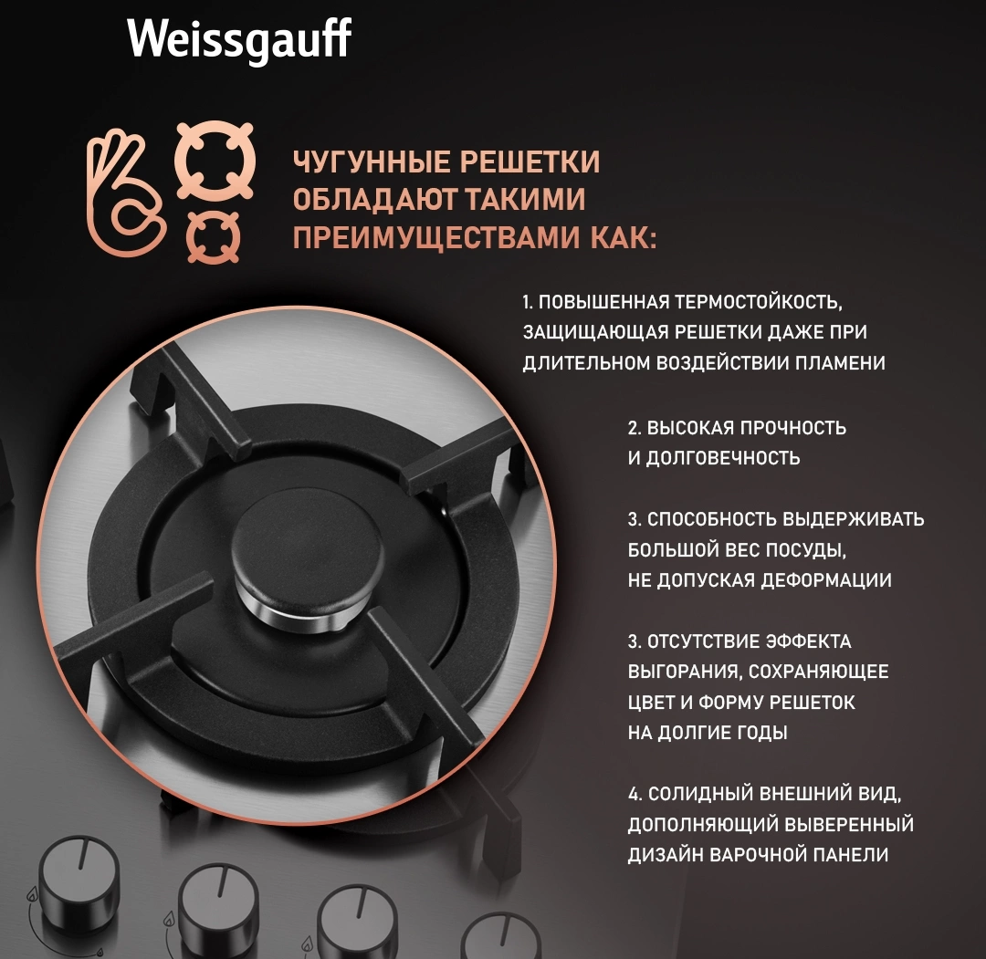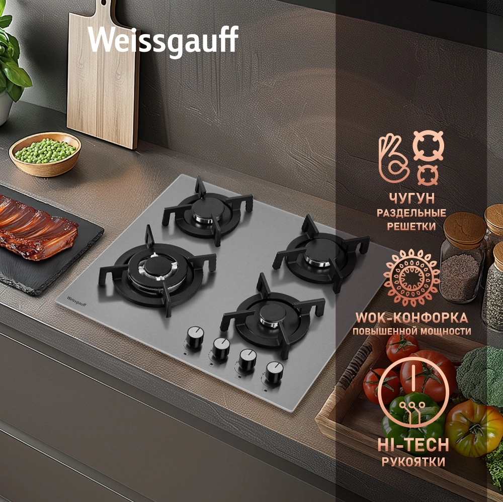 Газовая варочная поверхность Weissgauff HGG 641 XRV нержавеющая сталь