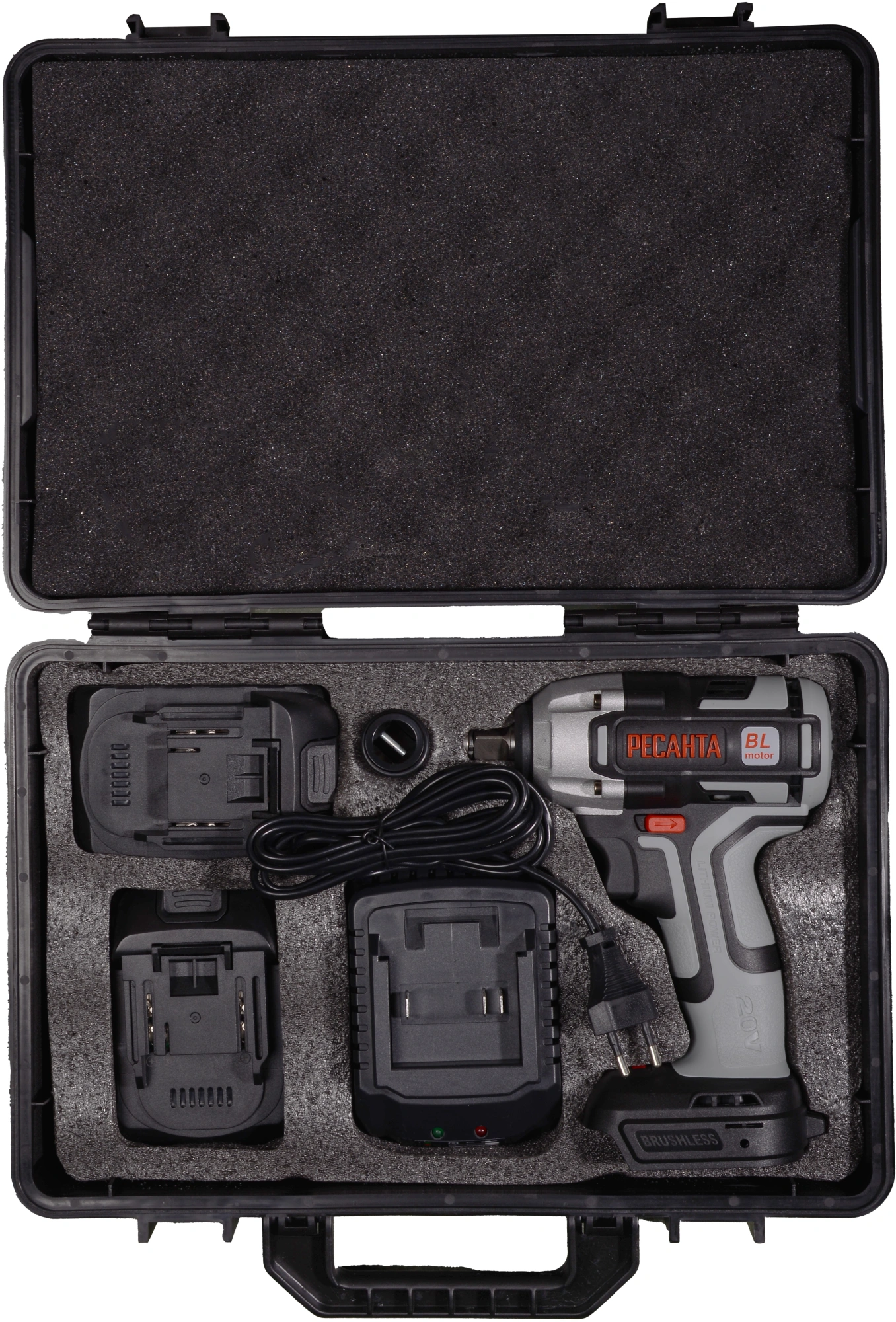 - Комплект поставки2 аккумулятора, кейс, зарядное устройство, торцевая головка