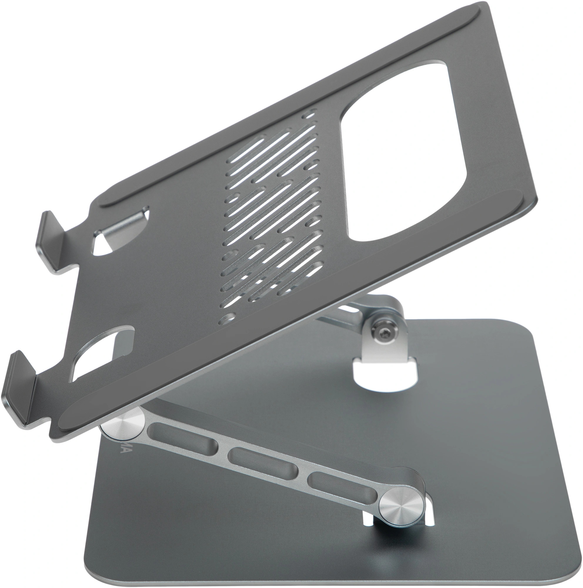 Металлическая подставка для ноутбука с прорезиненными вставками, которые препятствуют скатыванию ноутбука. Широкий диапазон настройки высоты и угла наклона позволяет легко подобрать оптимальное положение для работы. Совместима с ноутбуками диагональю до 17".