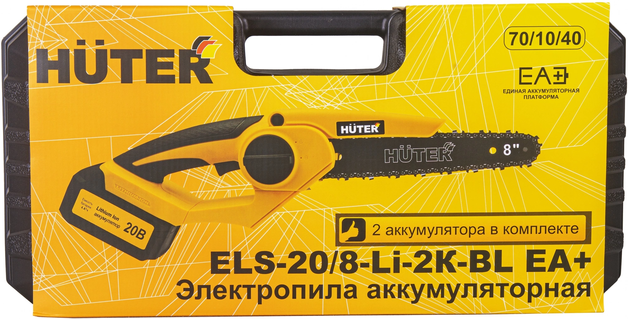 Электрическая цепная пила Huter ELS ELS-20/8-Li-2К-BL дл.шины:8" (20cm) 2аккум. 4Ач ЗУ (70/10/40)