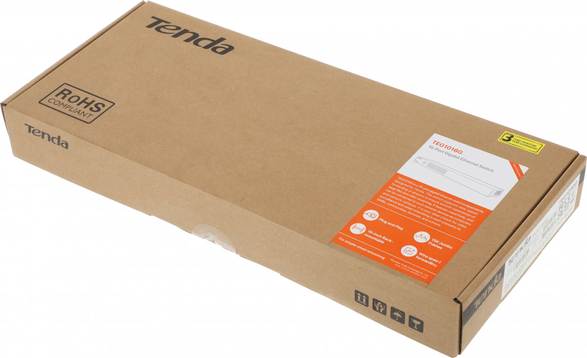 Коммутатор Tenda TEG1016G (L2) 16x1Гбит/с неуправляемый