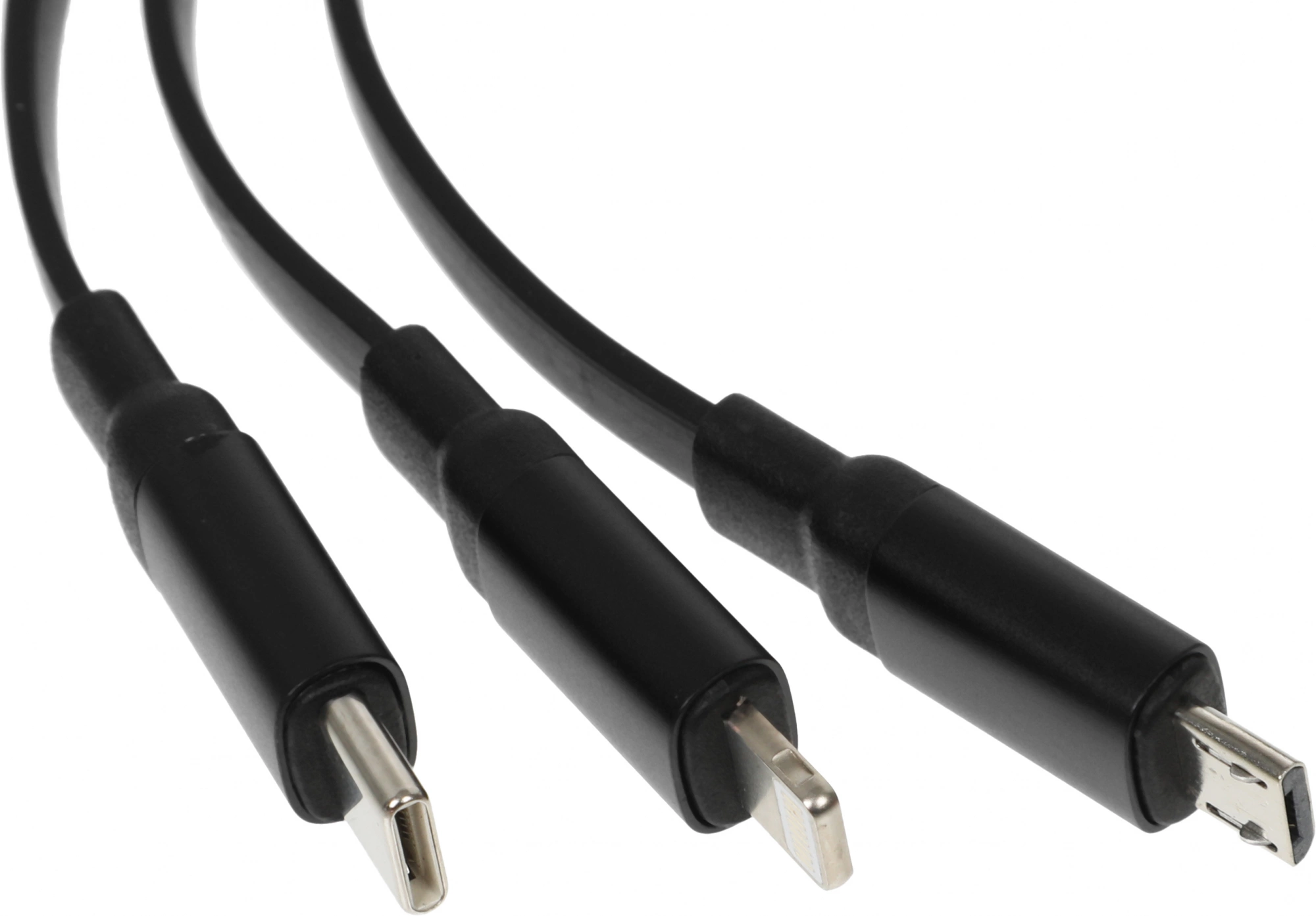 Кабель Hoco X78 Easy pull storage 3-in-1 91290 USB (m)-Lightning (m)/USB Type-C (m)/micro USB (m) 1м черный