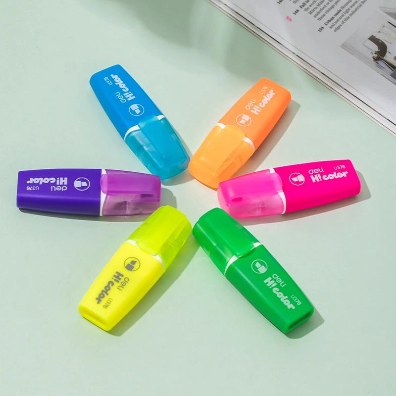Набор текстовыделителей Deli EU376 скошенный пиш. наконечник 1-5мм флуоросцентный 6цв. ассорти пластиковая коробка (6шт.)
