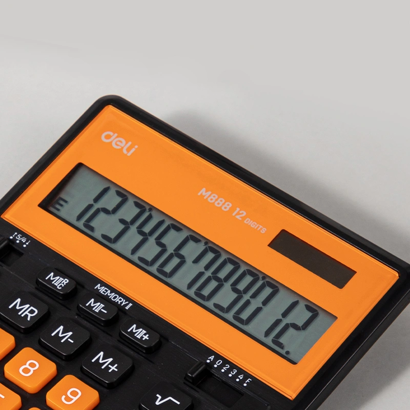 Калькулятор настольный Deli EM888A-BK-OR черный/оранжевый 12-разр.