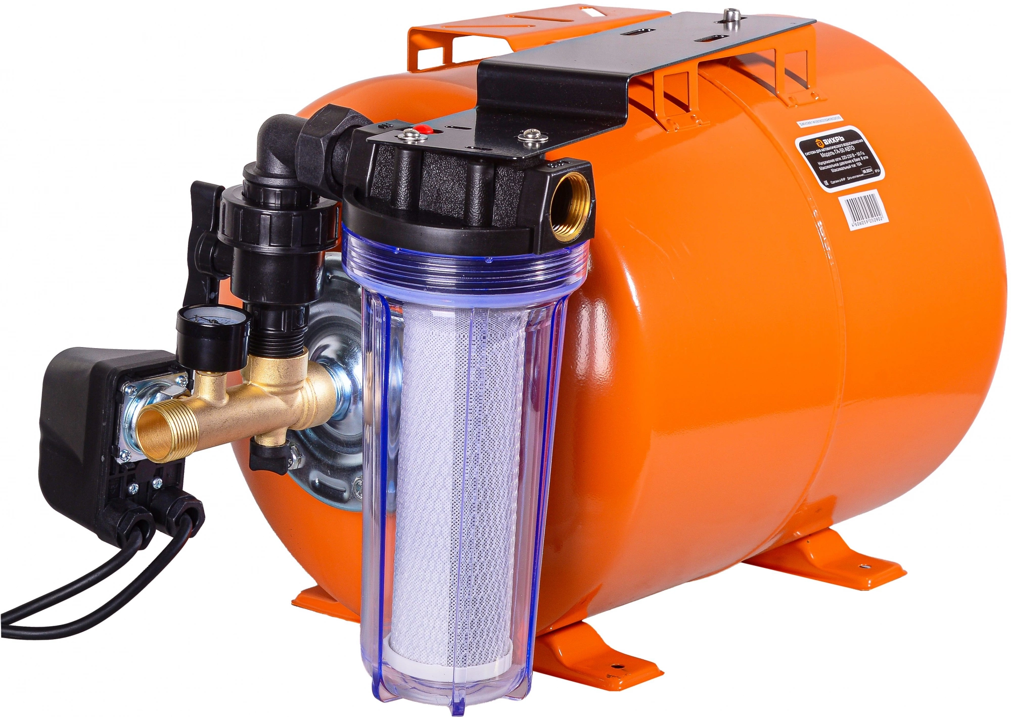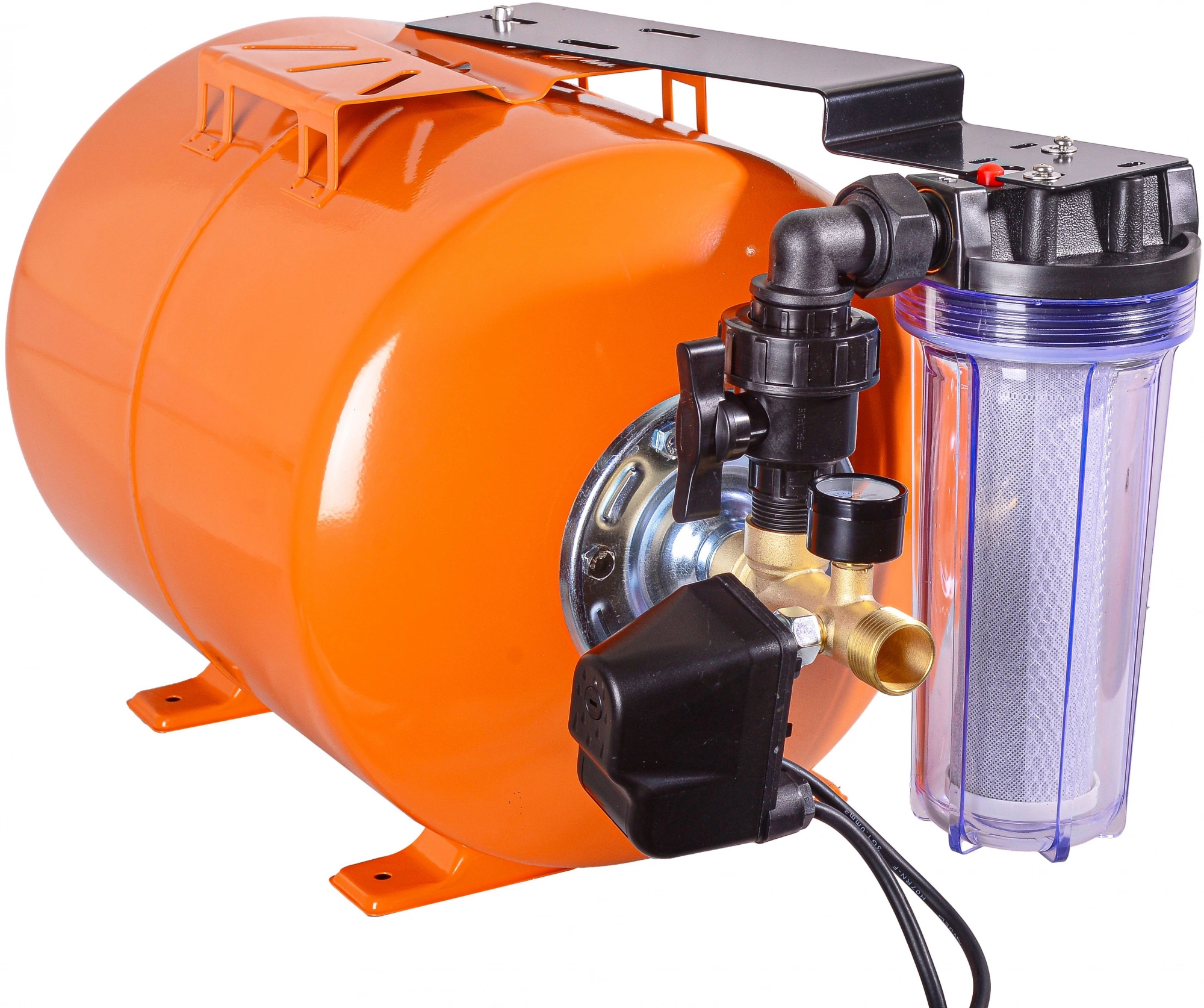 - Комплектация"Гидроаккумулятор; Реле давления с кабелем питания для насоса - 1 шт.; Фильтр для очистки воды - 1 шт.; Соединительная муфта - 1 шт.; Манометр - 1 шт.; Паспорт; Упаковка.