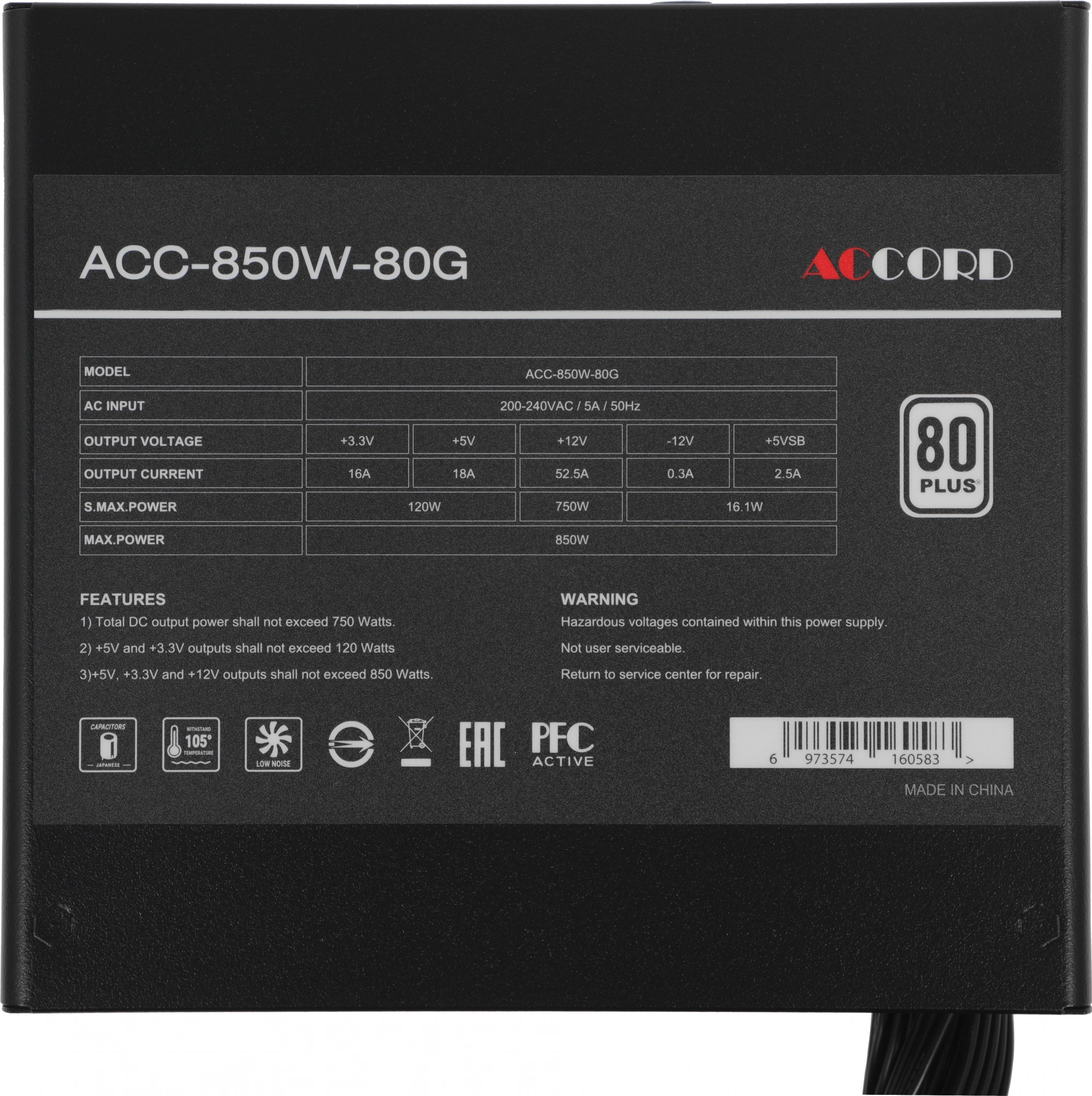 Блок питания Accord ATX 850W ACC-850-80G 80+ gold (20+4pin) APFC 120mm fan 6xSATA RTL
