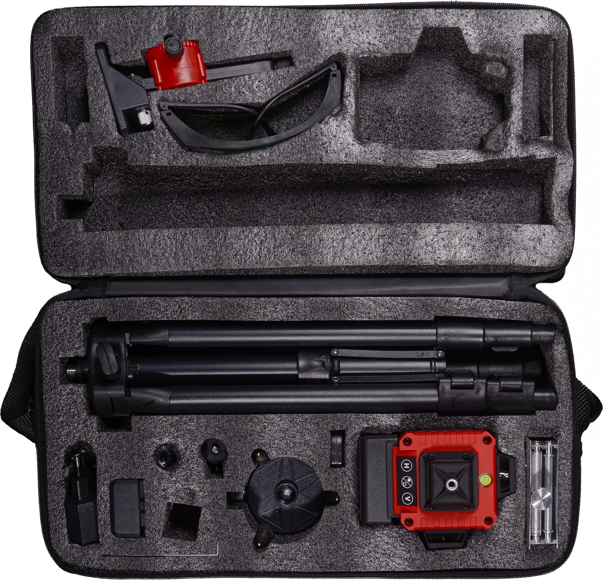 - Аксессуары в комплектесумка, аккумуляторная батарея - 2 шт., зу, пульт управления, очки, переходник с 1/4" на 5/8", переходник для наклонных линий, металлическая крепежная пластина, магнитный настенный кронштейн, подъемная платформа, регулируемая опора-тренога, штатив