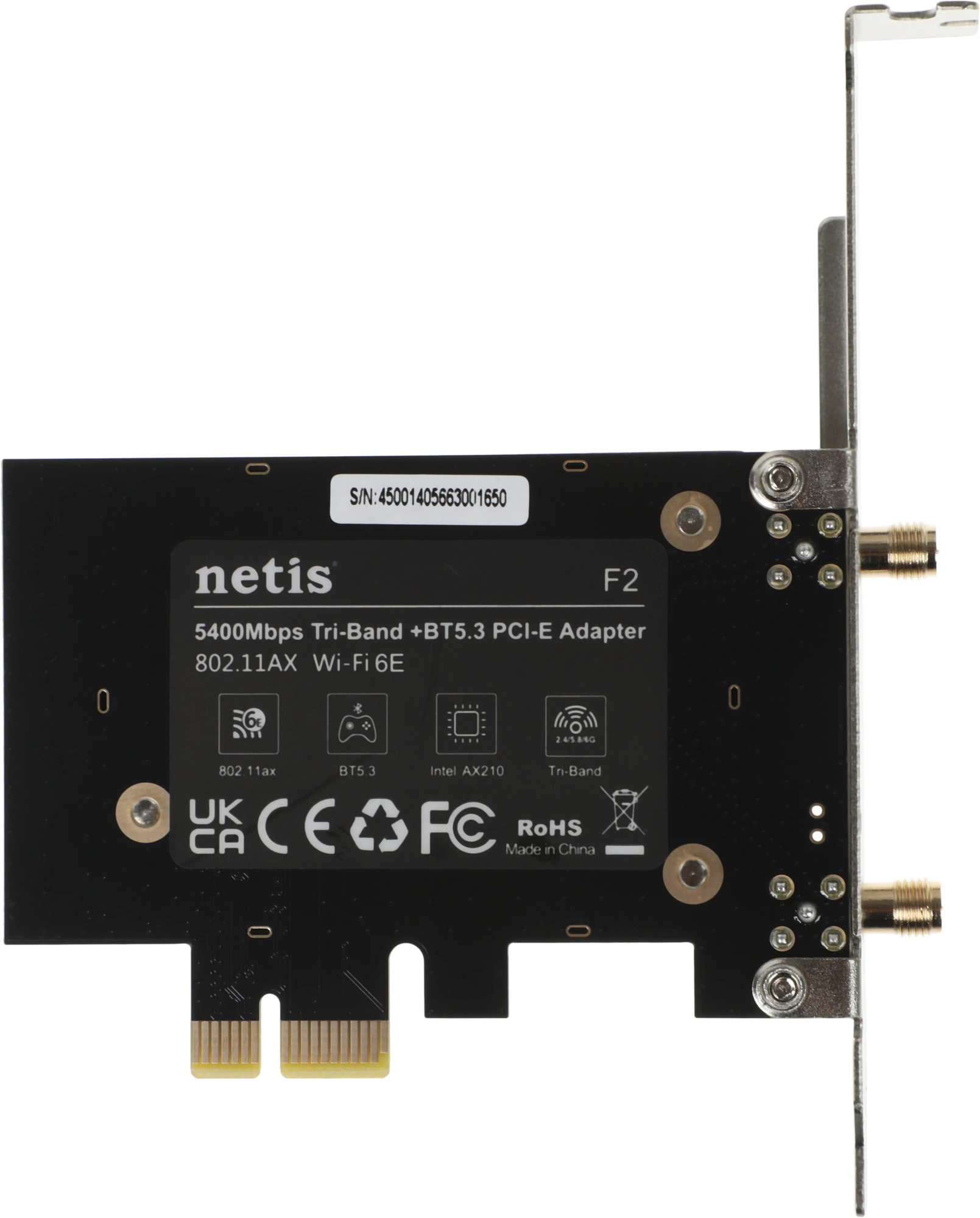 Сетевой адаптер Wi-Fi + Bluetooth Netis F2 АХ5400 PCI Express (ант.внеш.съем) 2ант.