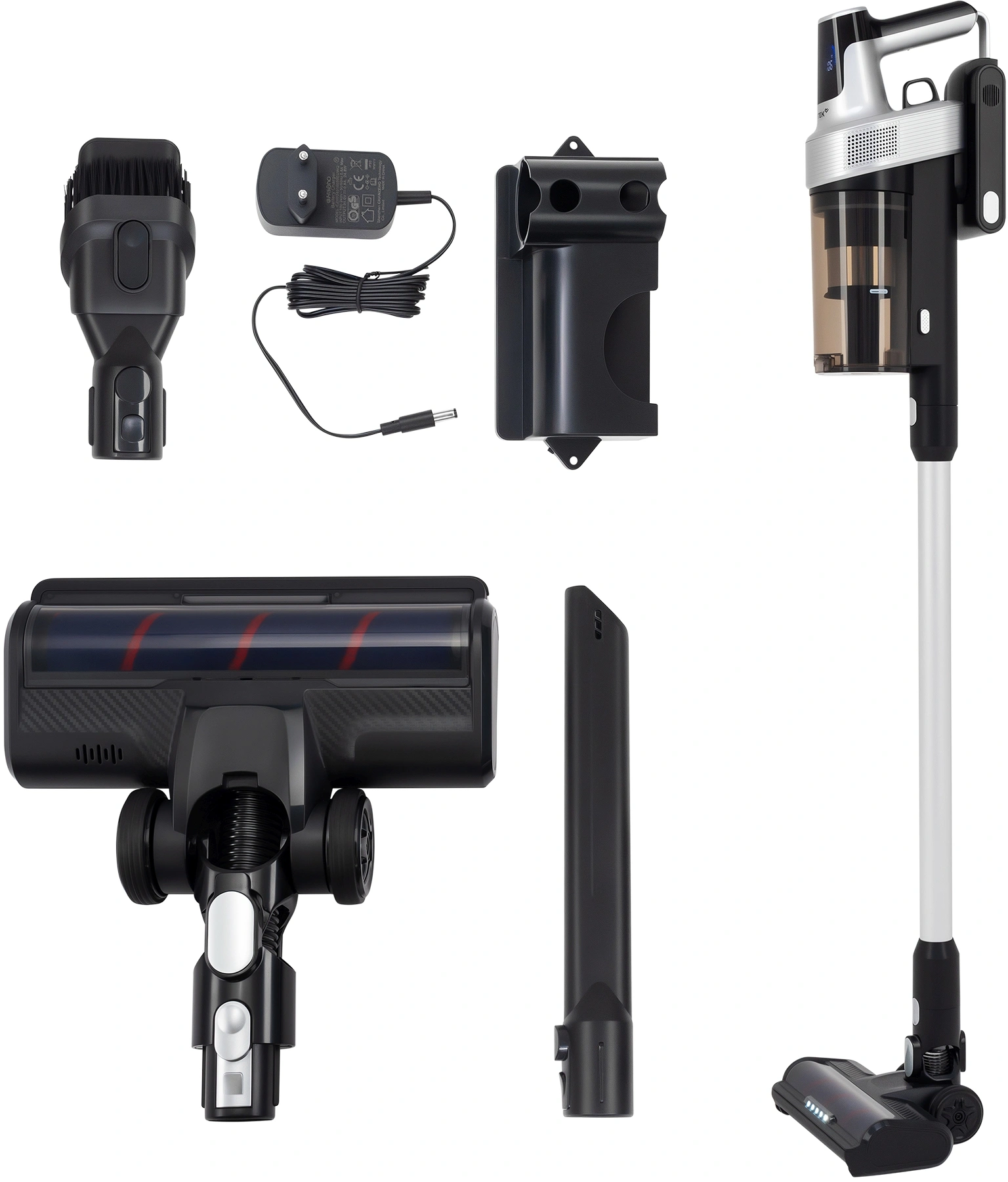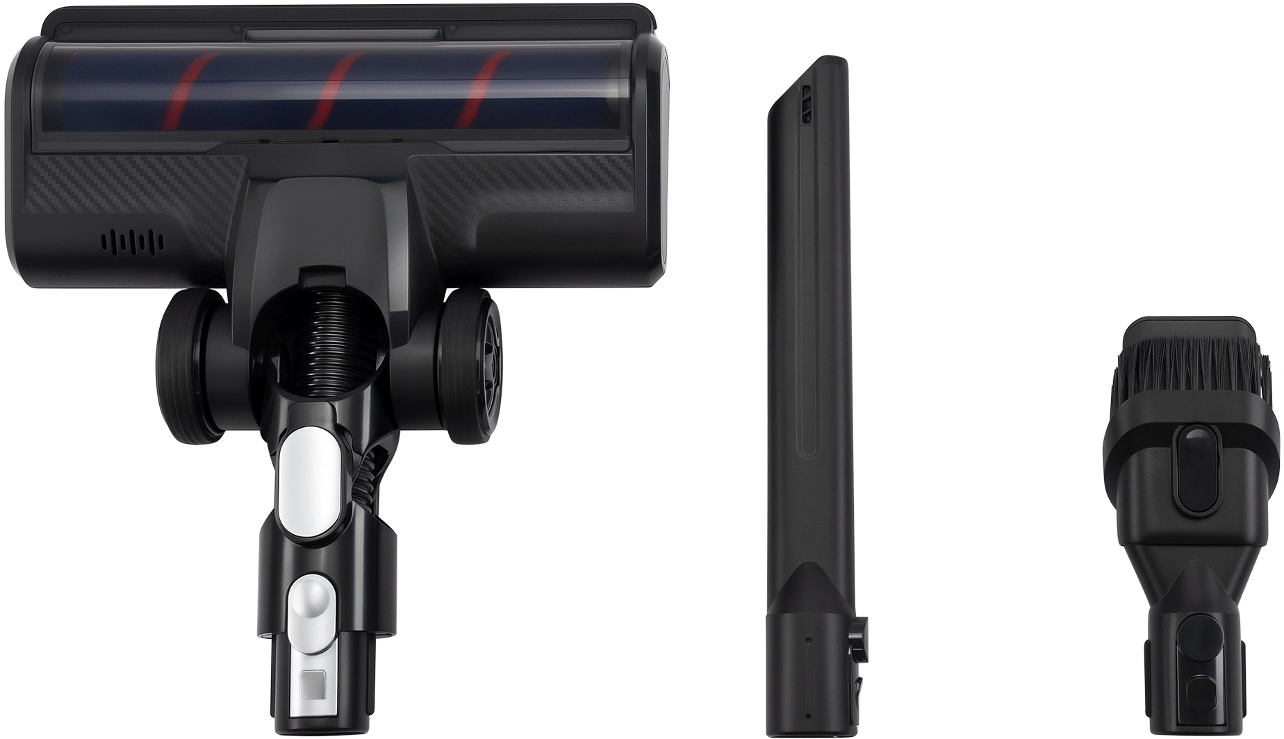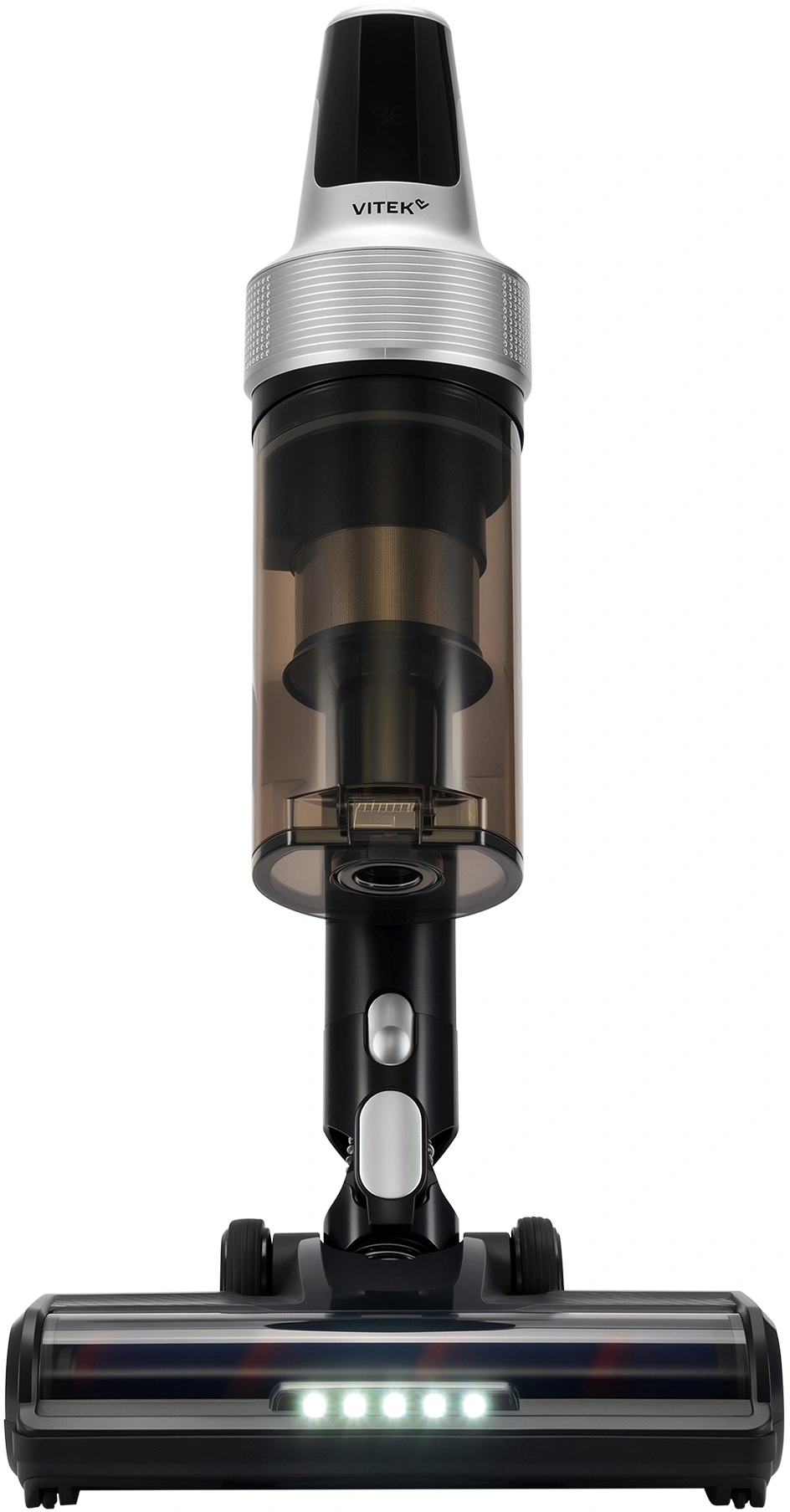 - Особенности пылесосаLED-дисплей, легко очищаемый пылесборник, подсветка зоны уборки, прорезиненные колеса
