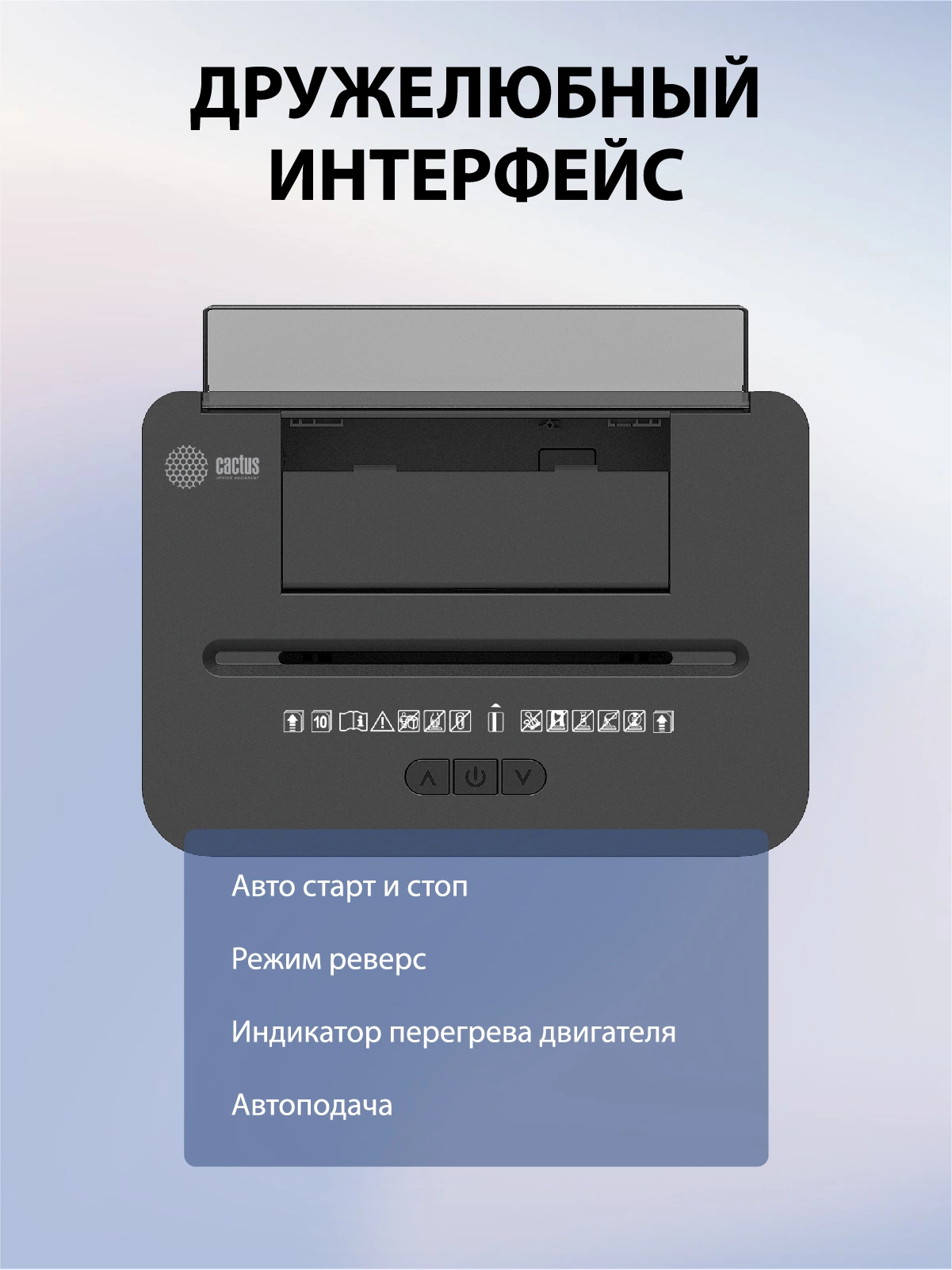 Шредер Cactus CS-SH-D8 с автоподачей (секр.P-4) фрагменты 150лист. 24лтр. скобы пл.карты