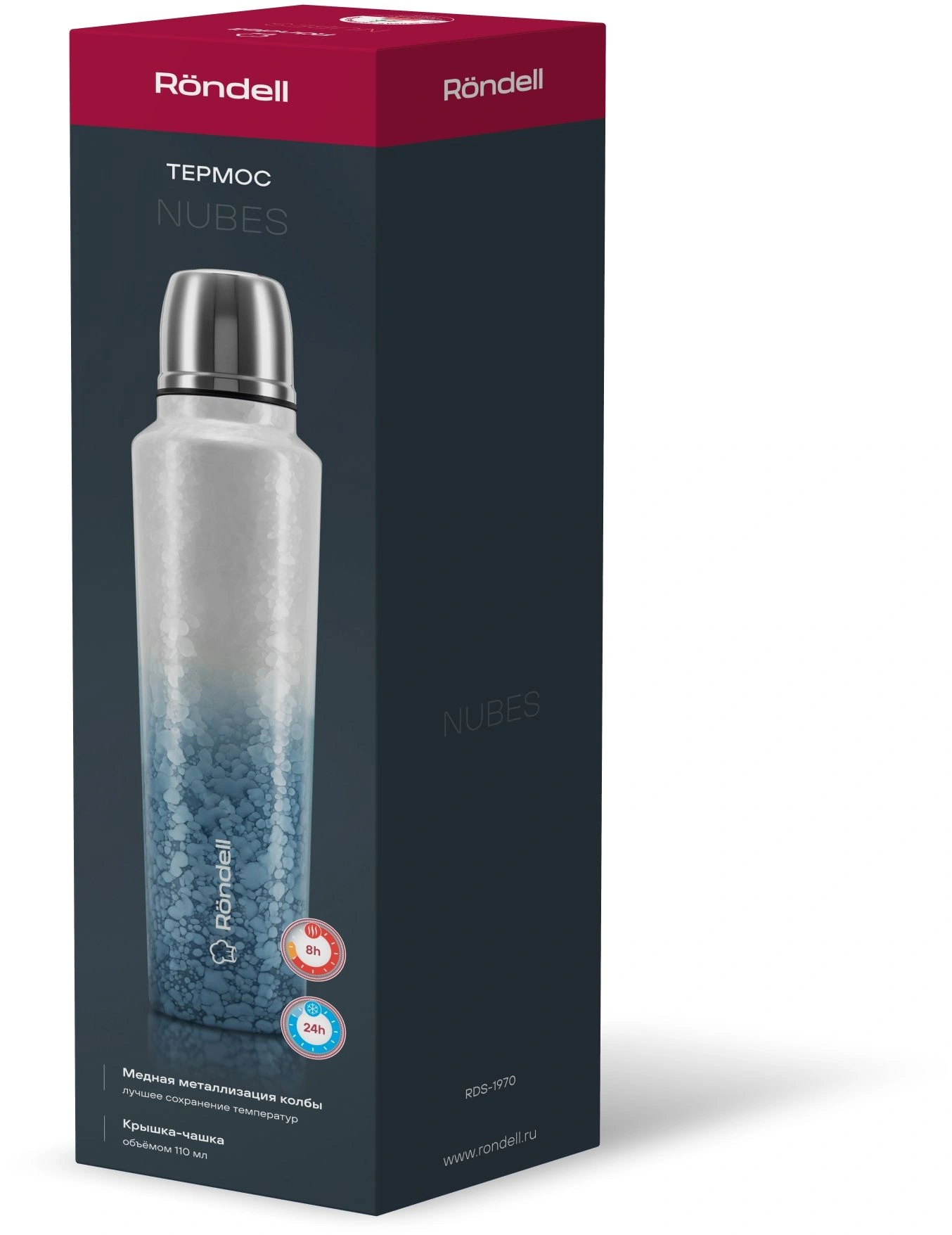 Термос Rondell Nubes RDS-1970 для напитков 1л. серый карт. коробка