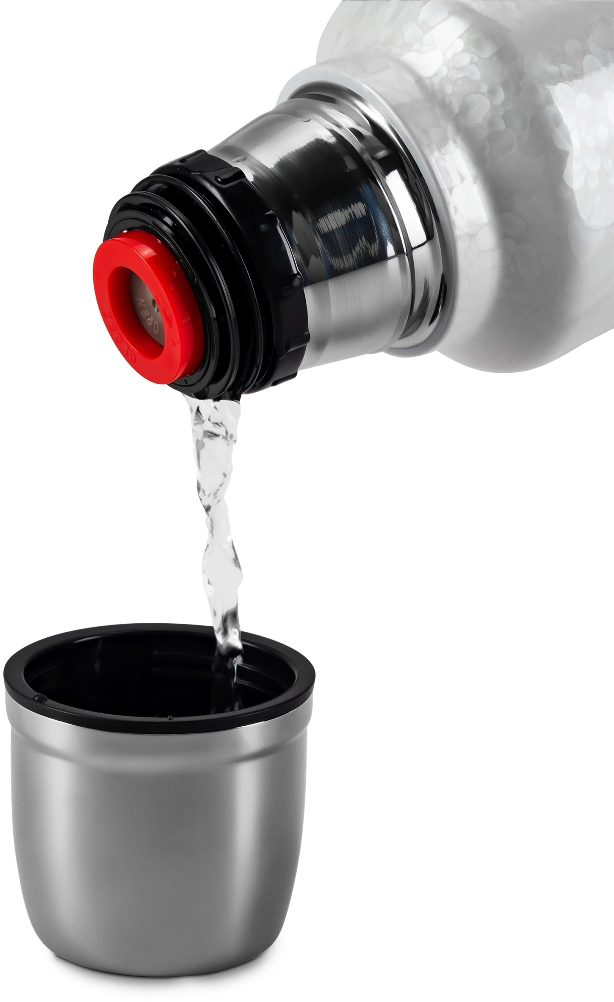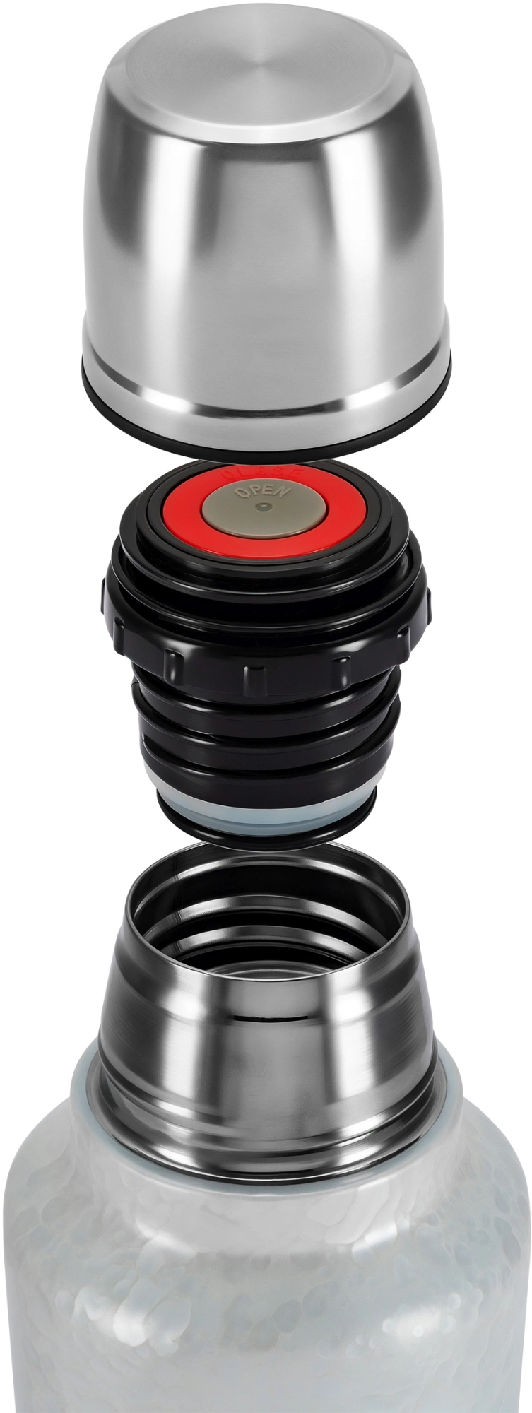 Термос Nubes с вакуумным слоем с медной металлизацией внутренней колбы сохраняет температуру: горячие до 8 ч (до 75°C), холодные до 24 ч (до 13°C). Крышка-стакан, открытие кнопкой без потери тепла, нескользящее прорезиненное основание обеспечивают удобство и надежность в использовании.