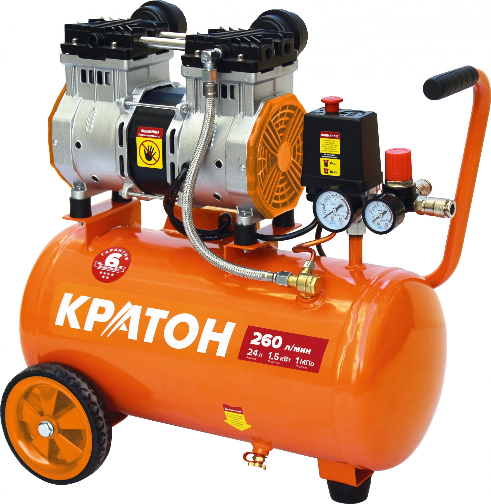 Компрессор поршневой Кратон AC-260-24-OFHS безмасляный 260л/мин 24л 1500Вт оранжевый